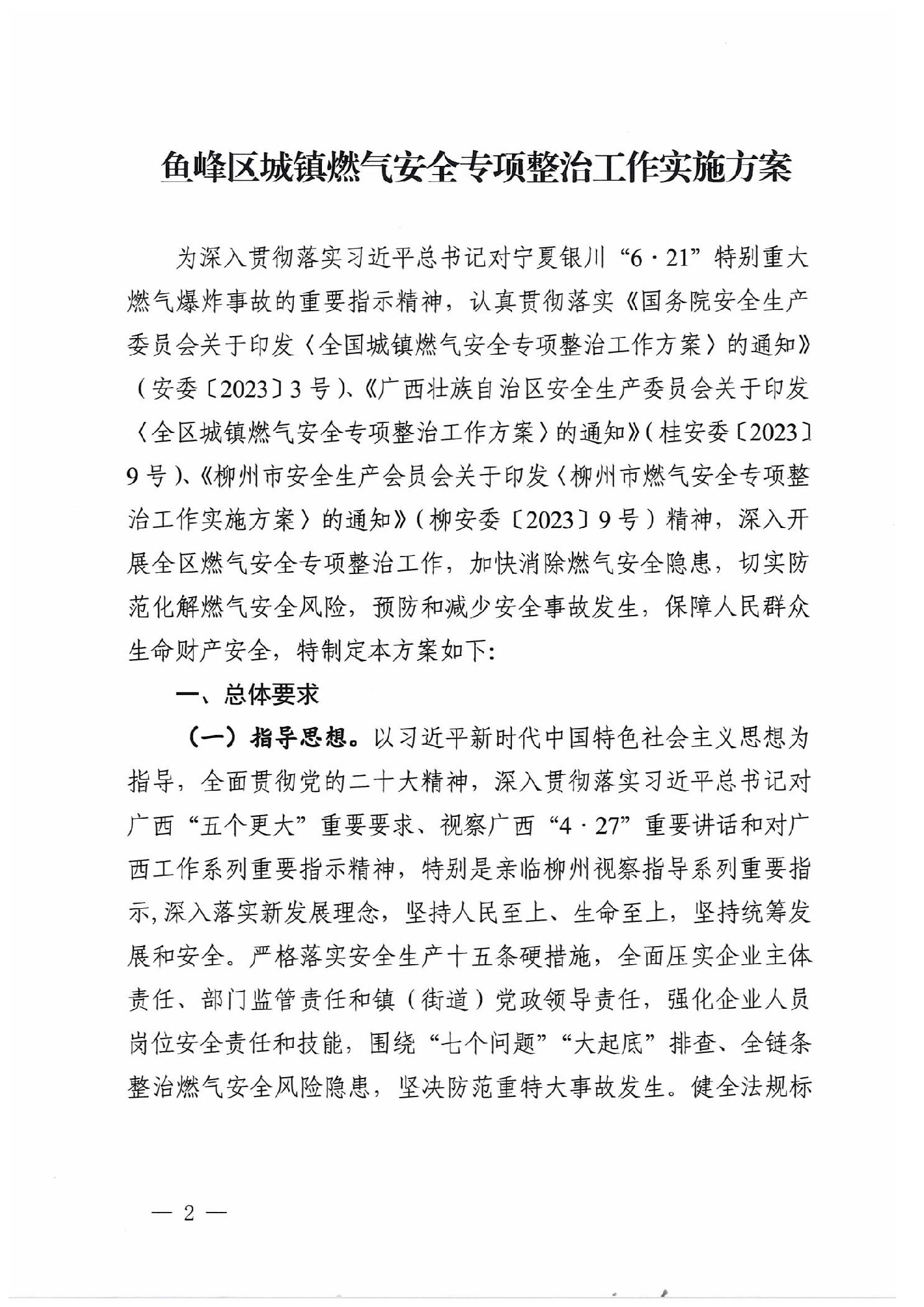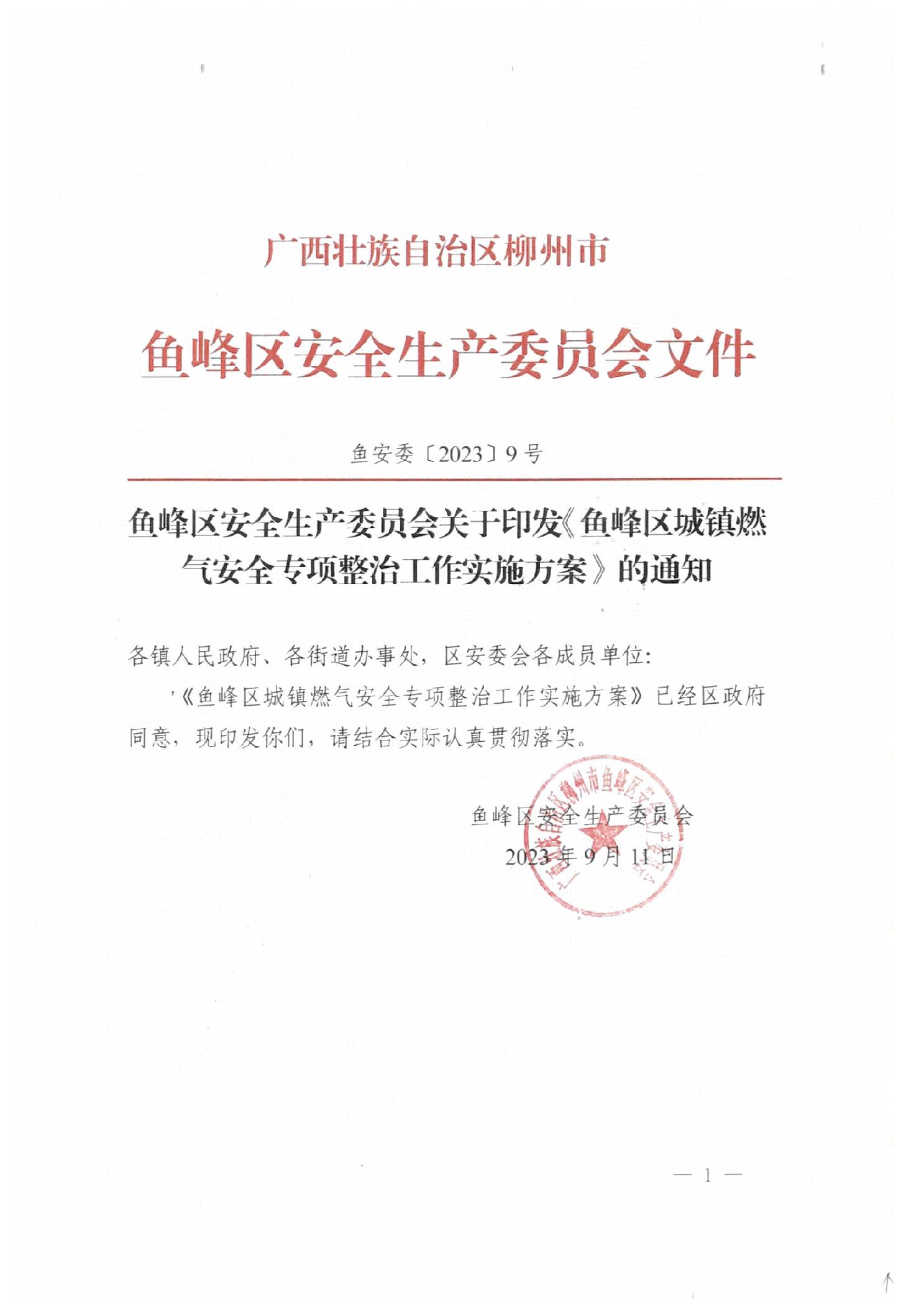 鱼安委〔2023〕9 号 鱼峰区安全生产委员会关于印发《鱼峰区城镇燃气安全专项整治工作实施方案》的通知