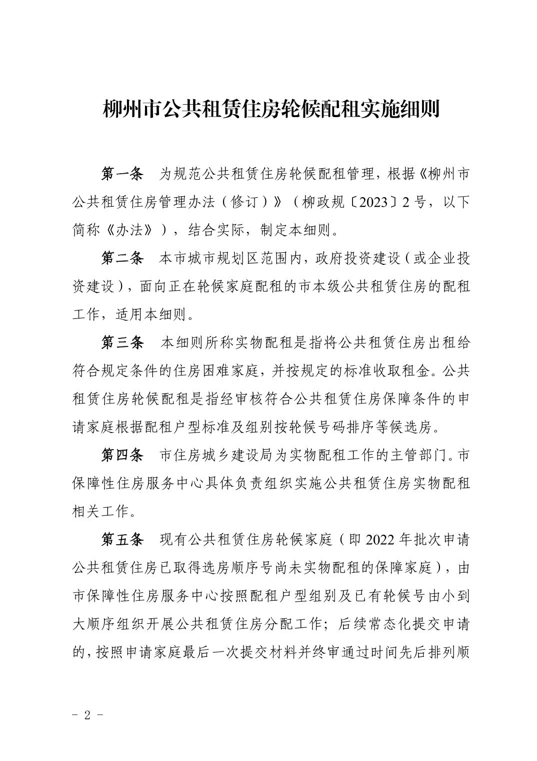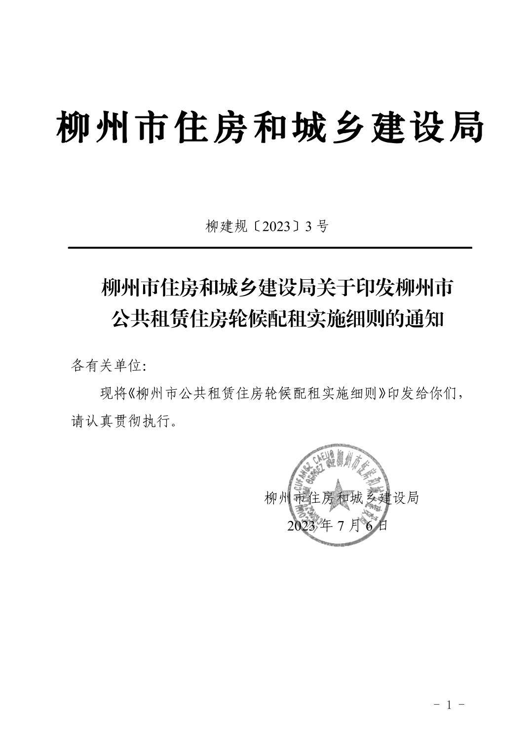 柳州市住房和城乡建设局关于印发《柳州市公共租赁住房轮候配租实施细则》的通知