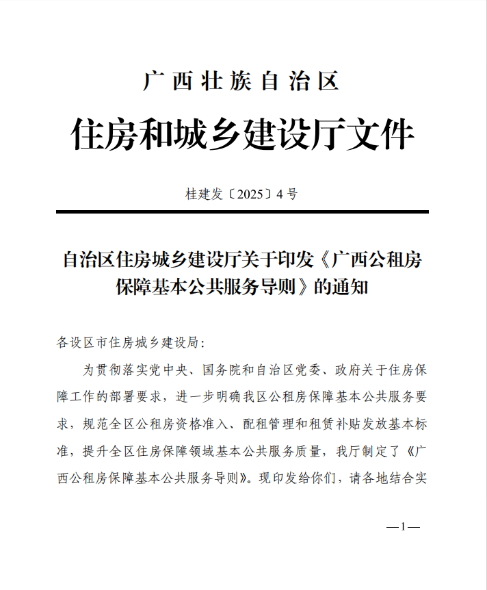 桂建发〔 2025〕4号 自治区住房城乡建设厅关于印发《广西公租房保障基本公共服务导则》的通知