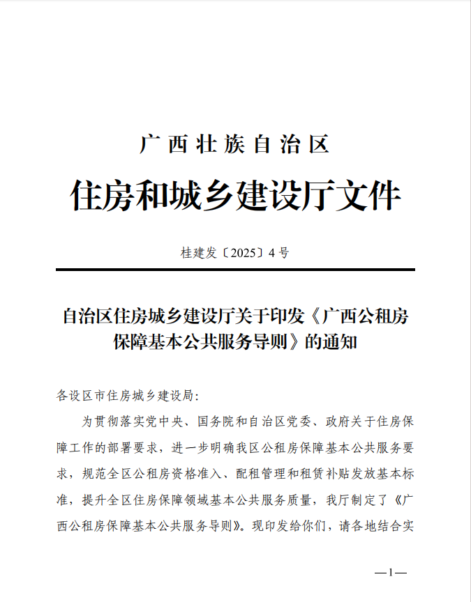 桂建发〔 2025〕4号 自治区住房城乡建设厅关于印发《广西公租房保障基本公共服务导则》的通知