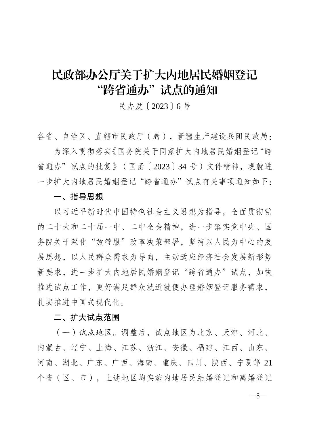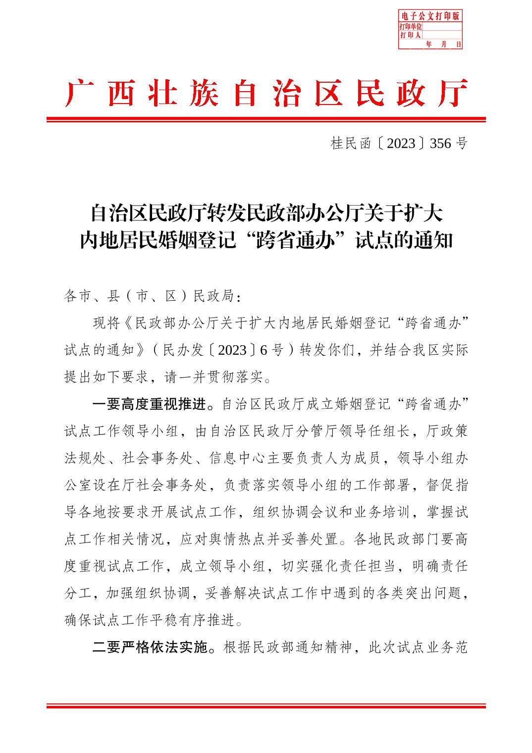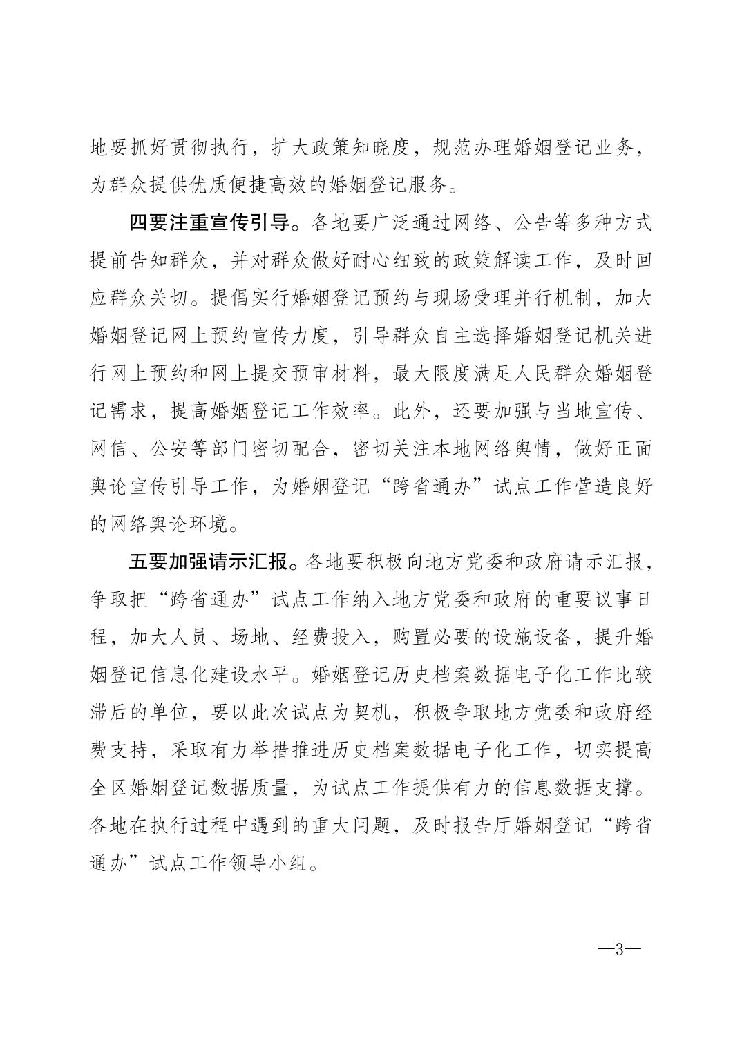 自治区民政厅转发民政部办公厅关于扩大内地居民婚姻登记“跨省通办”试点的通知