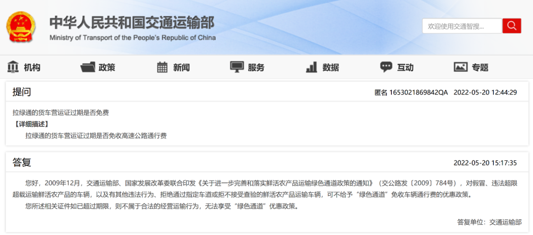 拉绿通的货车营运证过期是否免收高速公路通行费?