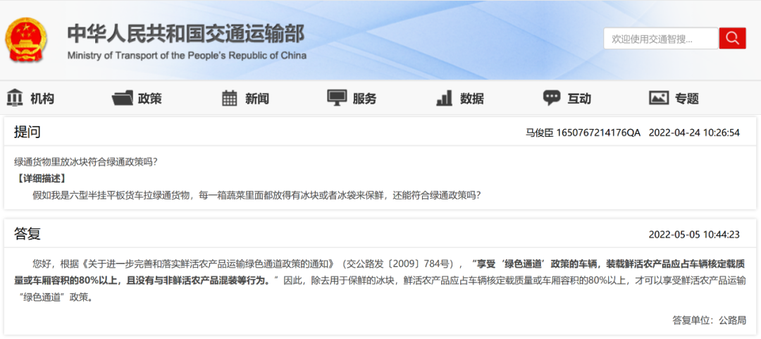 假如我是六型半挂平板货车拉绿通货物,每一箱蔬菜里面都放得有冰块或者冰袋来保鲜,还能符合绿通政策吗?