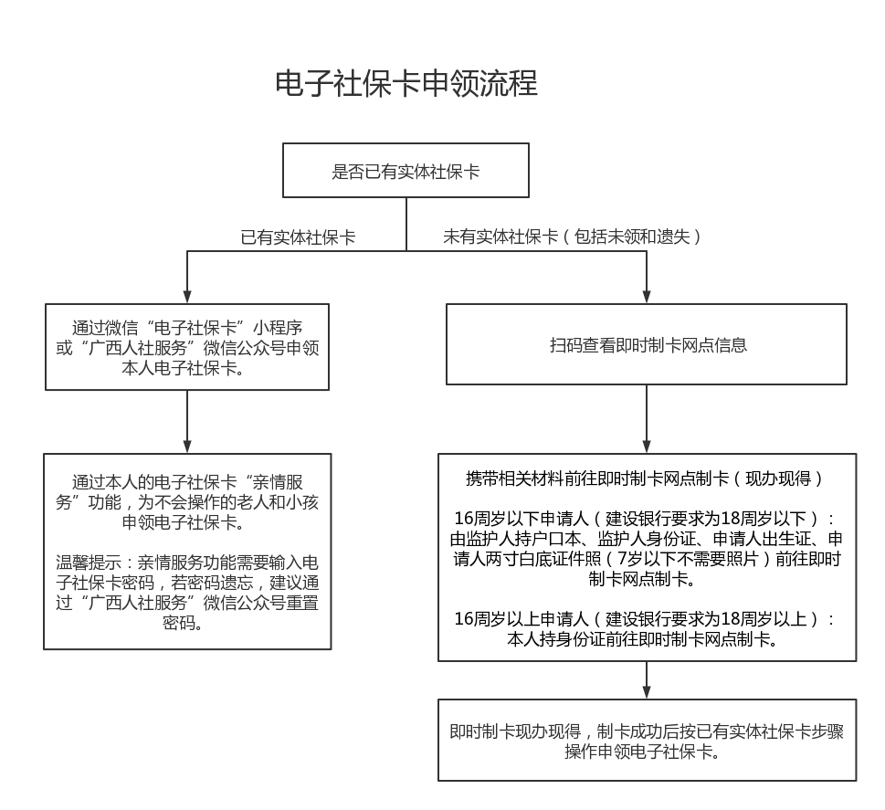 3.即时制卡现办现得,制卡成功后按流程图中“已有实体社保卡”步骤,为本人和亲属申领电子社保卡。