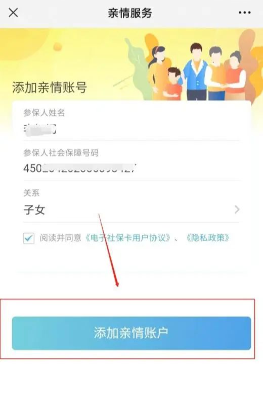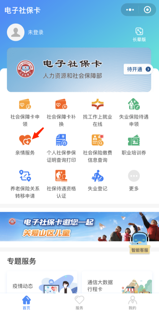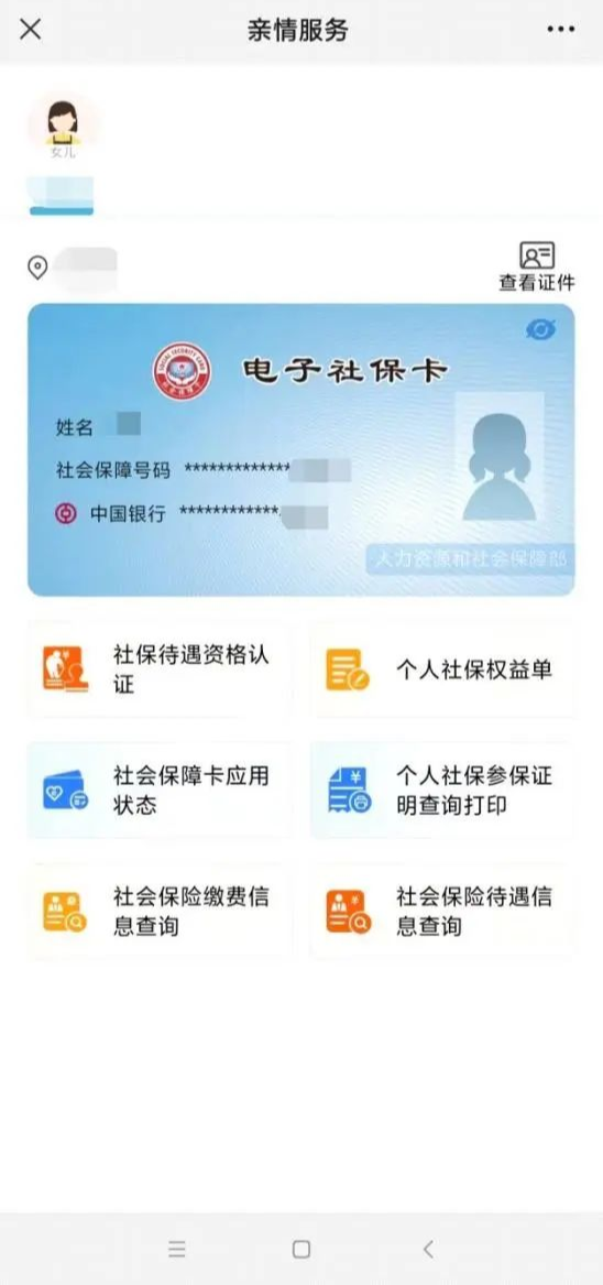 2.通过“亲情服务”功能绑定亲属电子社保卡;