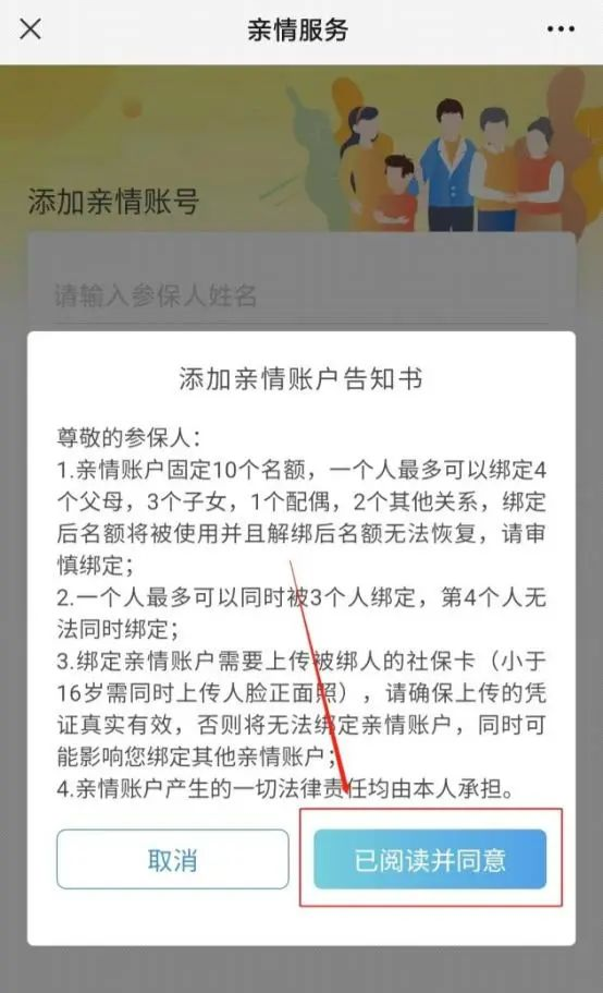 1.请预先准备好需绑定亲情账户人员的实体社保卡。