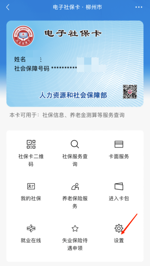 1.通过“广西人社服务”微信公众号,进入电子社保卡首页,点击“设置”,点击“重置密码”;