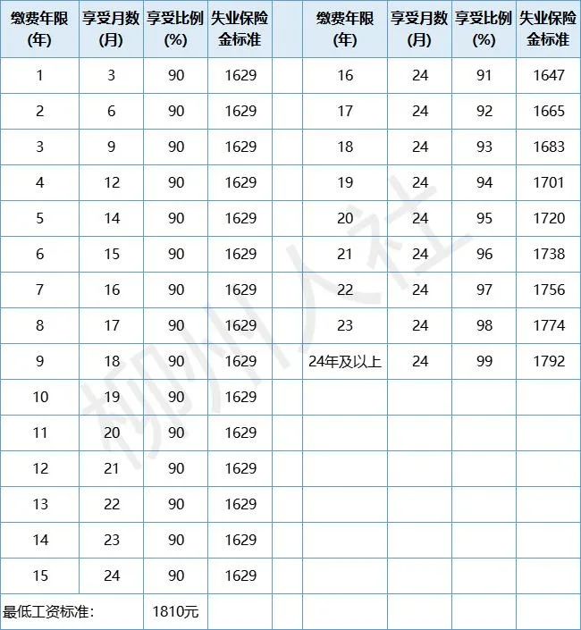 失业保险累计缴费时间超过15年以上的,按当地最低工资标准的90%的基础上,每超过一年,以当地最低工资标准为基数增加一个百分点发放,但最高发放标准应低于当地最低工资标准。