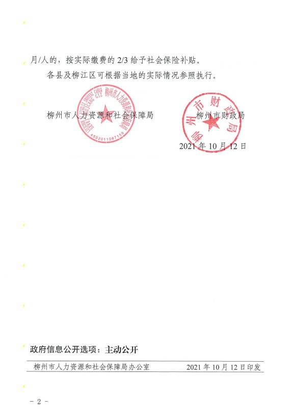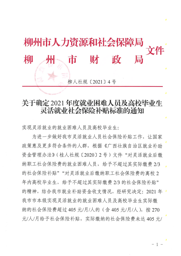 柳人社规〔2021〕4号 关于确定2021年度就业困难人员及高校毕业生灵活就业社会保险补贴标准的通知