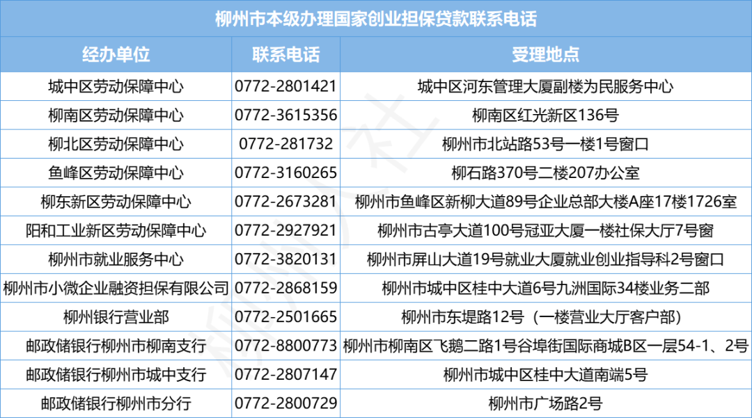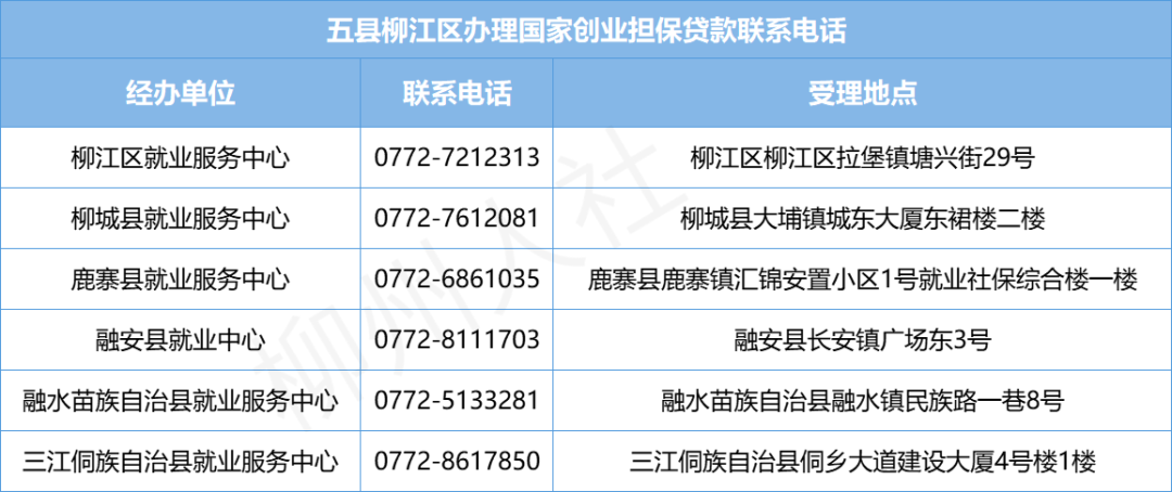 目前,五县和柳江区也在积极开展国家创业担保贷款,有需要的朋友们可拨打电话详细了解。