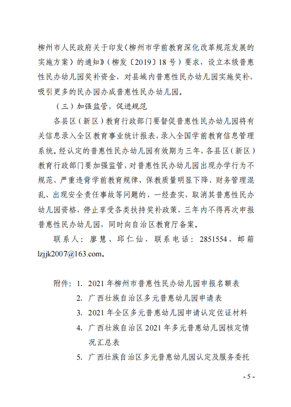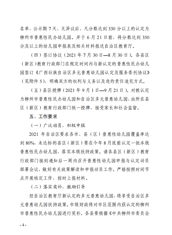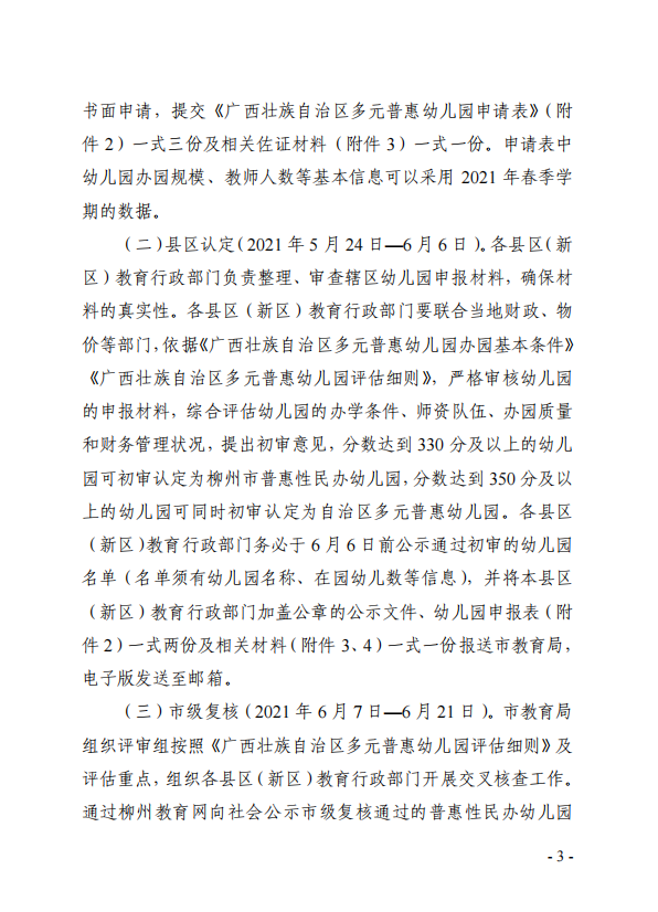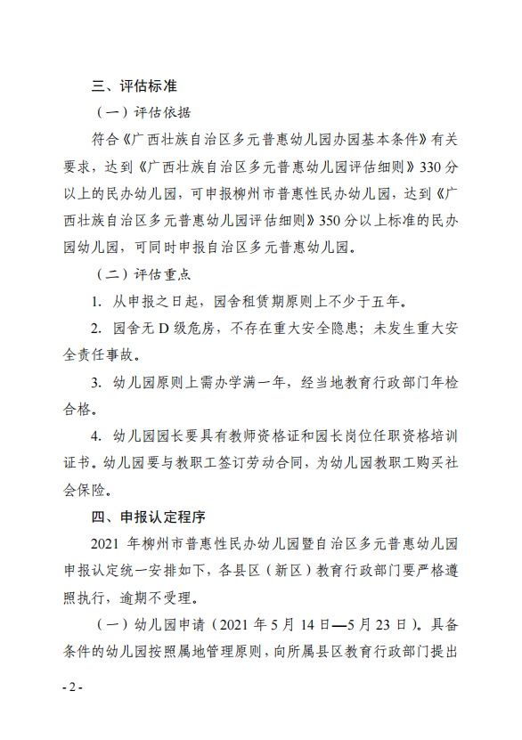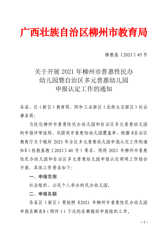 柳教基〔2021〕45 号 关于开展 2021 年柳州市普惠性民办幼儿园暨自治区多元普惠幼儿园申报认定工作的通知