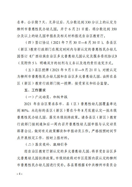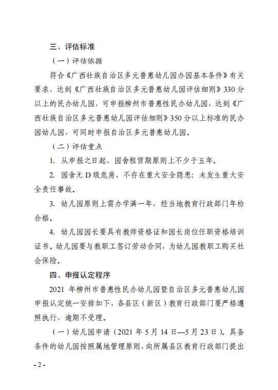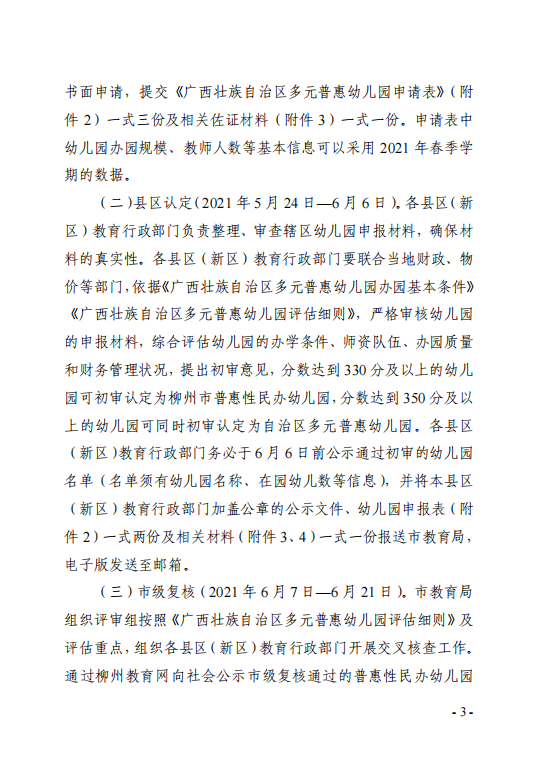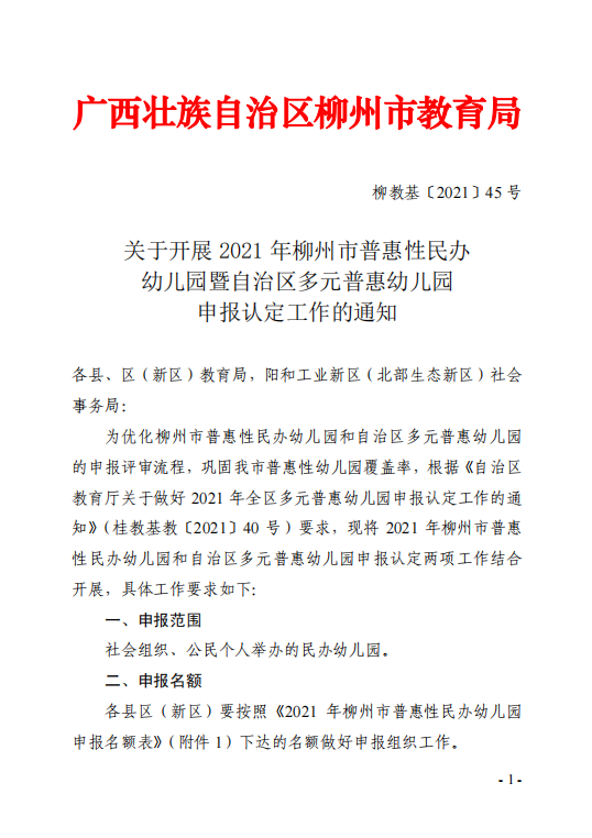 关于开展2021年柳州市普惠性民办幼儿园暨自治区多元普惠幼儿园申报认定工作的通知