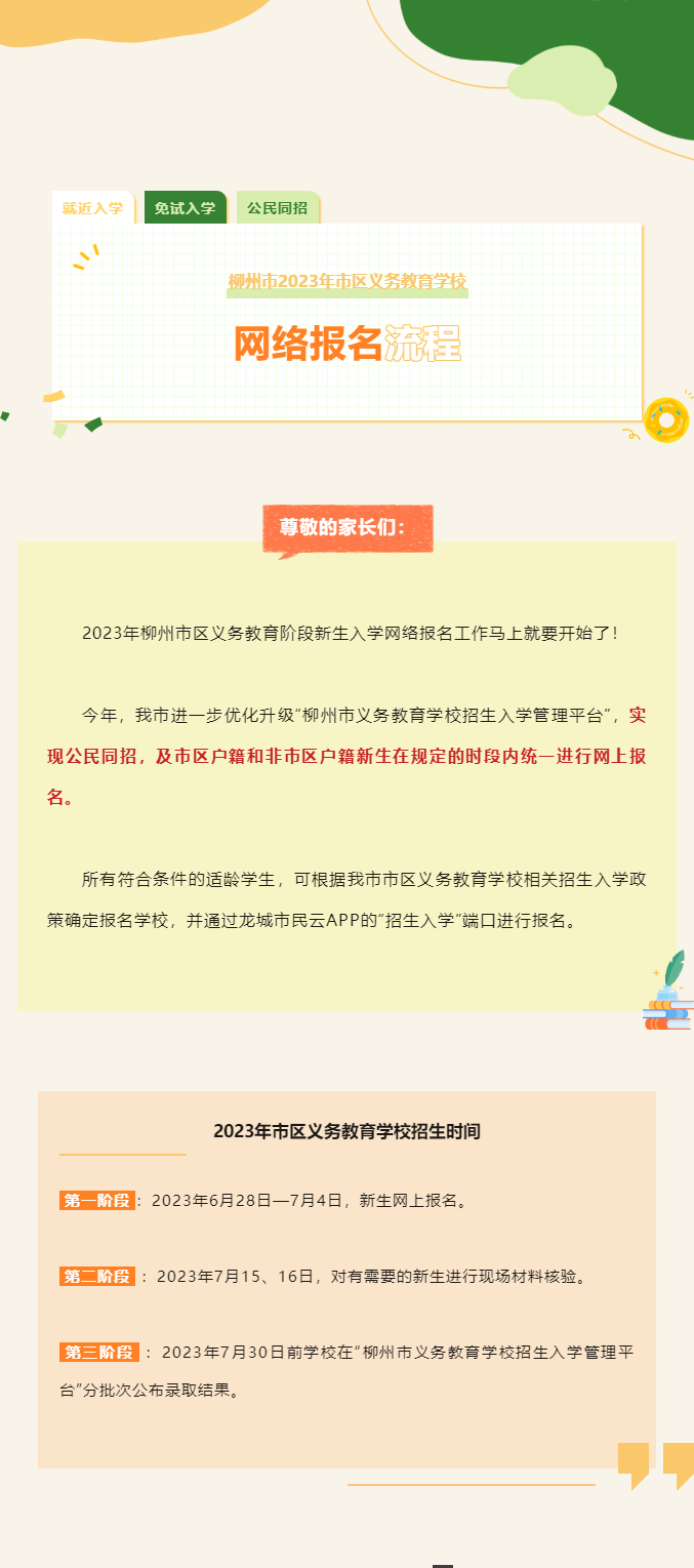 新生家长速看!柳州市2023年市区义务教育学校网络报名指南来了