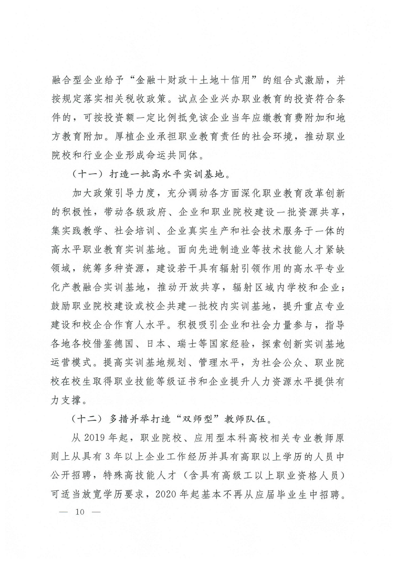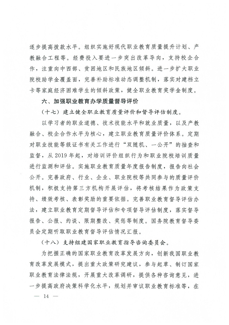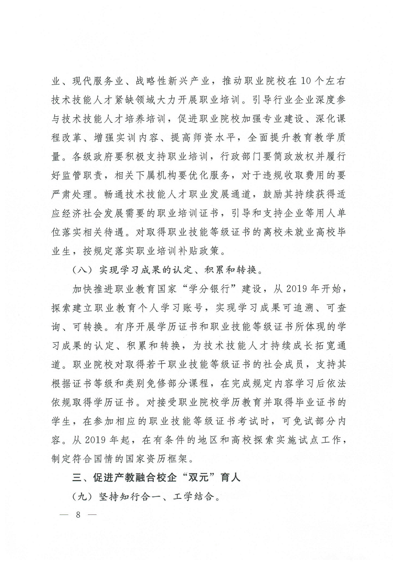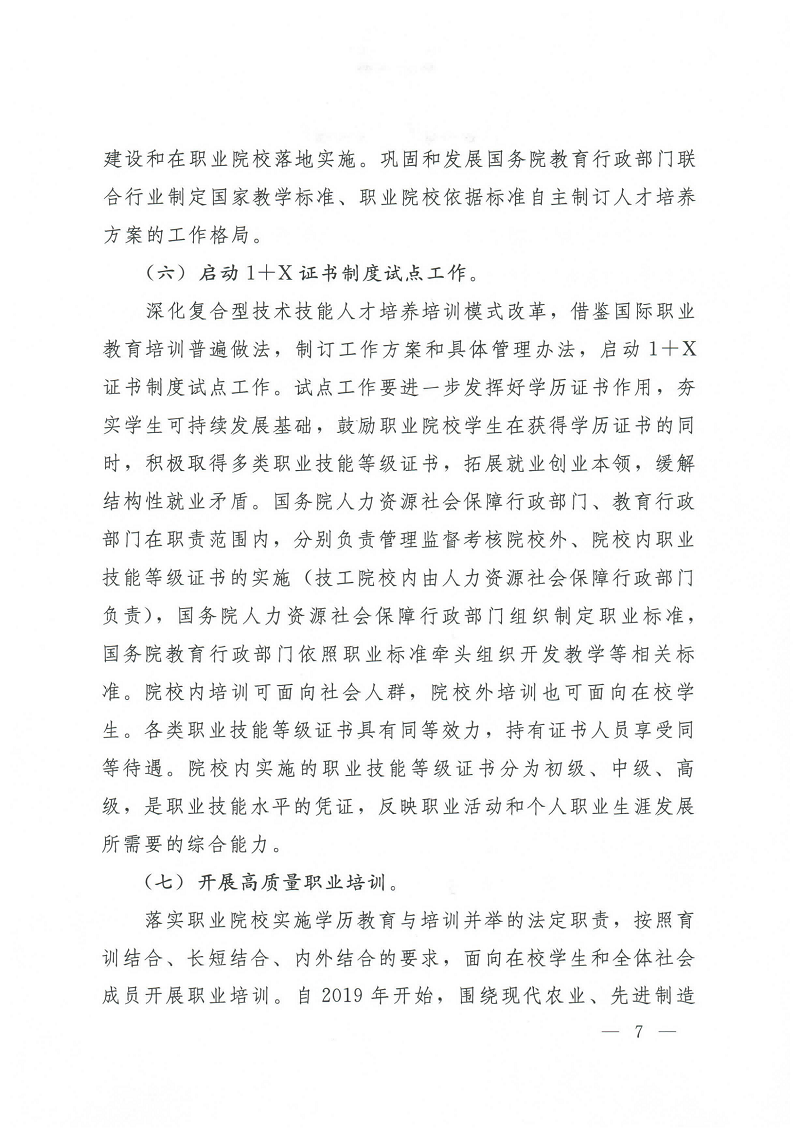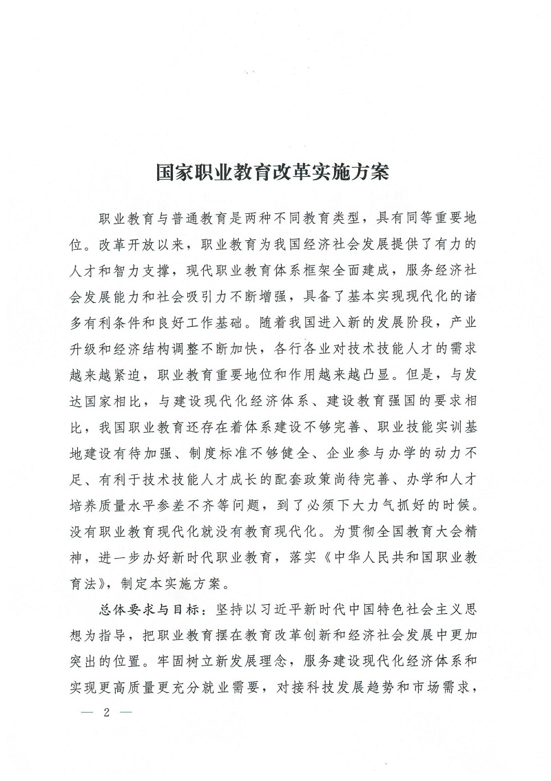 国发〔2019〕4号 国务院关于印发国家职业教育改革实施方案的通知
