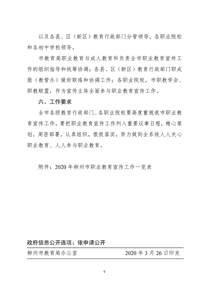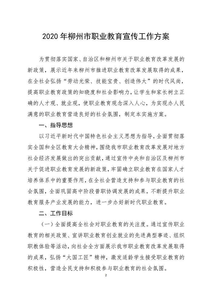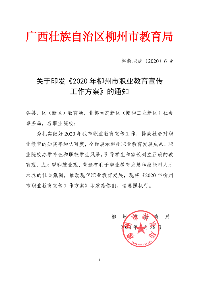 柳教职成〔2020〕6号关于印发《2020年柳州市职业教育宣传工作方案》的通知