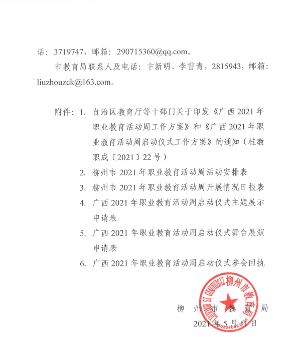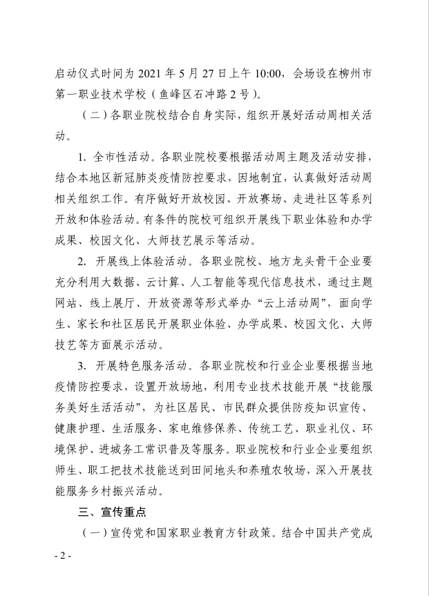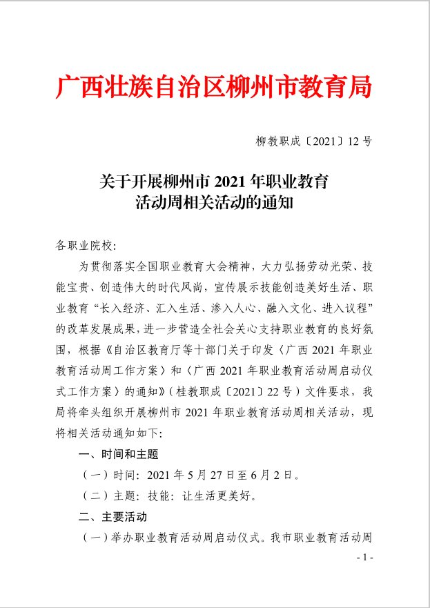 柳教职成〔2021〕12 号 关于开展柳州市2021年职业教育活动周相关活动的通知