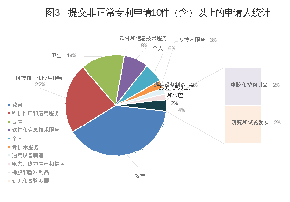 2.上表只统计提交非正常专利申请10件以上(含)的申请人。