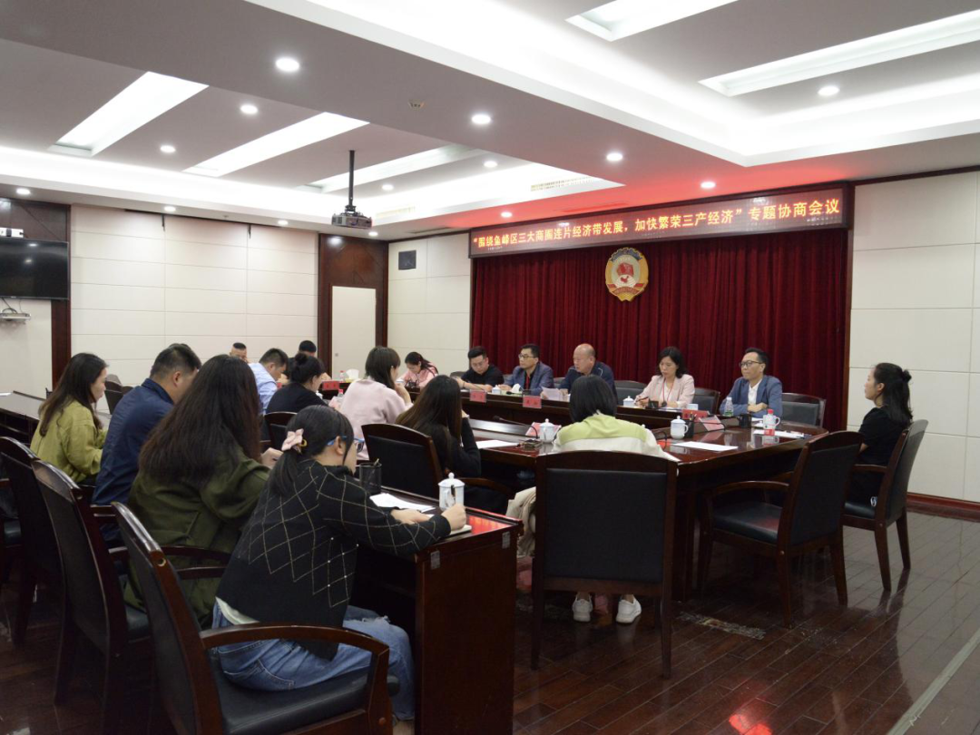 5月10日上午,鱼峰区政协副主席戴翔组织召开“围绕鱼峰区三大商圈连片经济带发展,加快繁荣三产经济”专题协商活动,鱼峰区政协经济科技联谊委员会主任杨卫,区商务局、文体广旅局、驾鹤街道、麒麟街道、箭盘街道等部门负责人,窑埠商圈、万象商圈、银泰商圈等商圈代表,以及部分政协委员参加了此次活动。