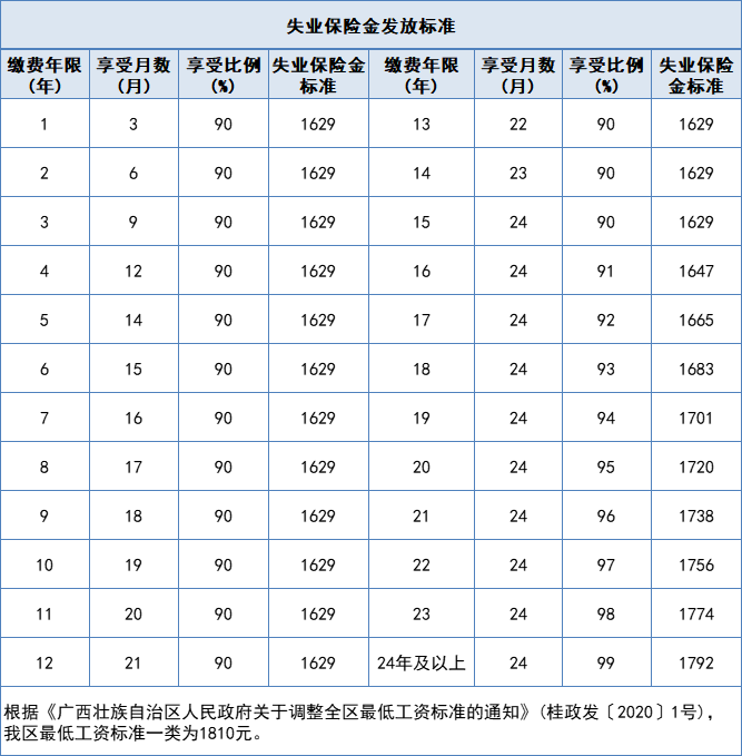 1.累计缴费时间不超过(含)15年的,按当地最低工资标准的90%发放;