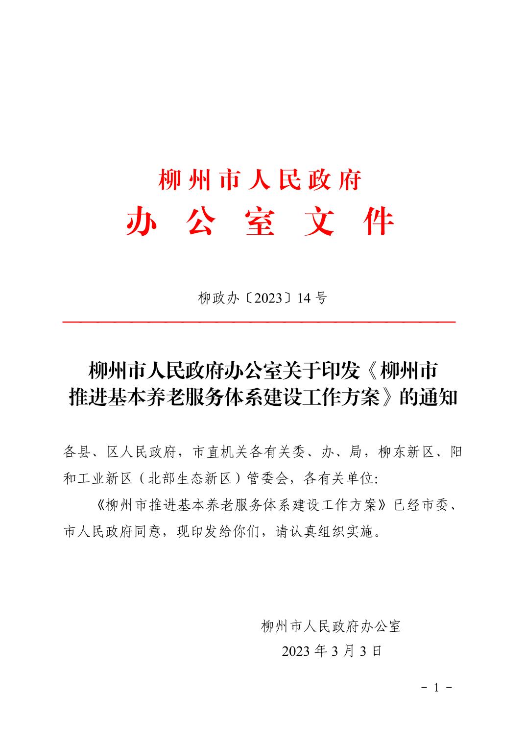 关于印发《柳州市推进基本养老服务体系建设工作方案》的通知