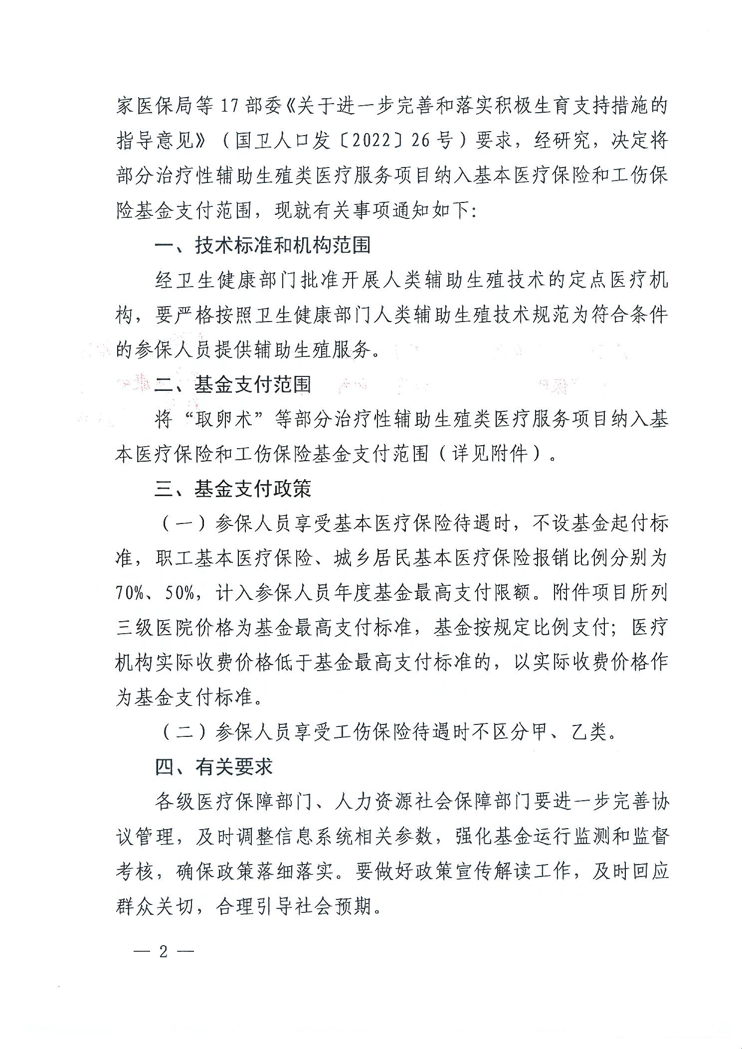桂医保规〔2023〕2号 关于将部分治疗性辅助生殖类医疗服务项目纳入基本医疗保险和工伤保险基金支付范围的通知