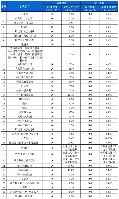 门诊特殊慢性病实行按病种保障,将冠心病、肝硬化、恶性肿瘤门诊治疗等38种慢性或重症疾病纳入保障范围。