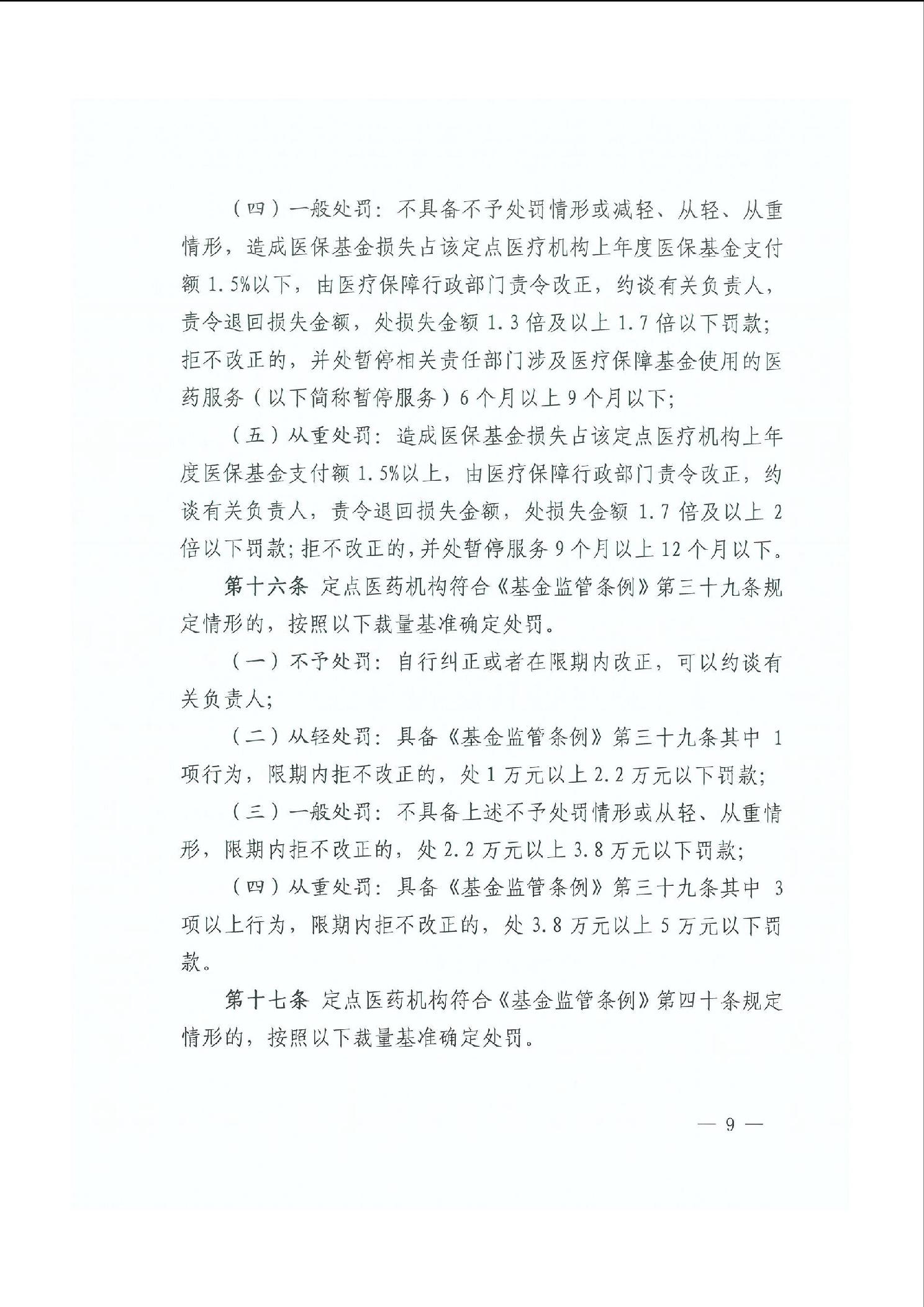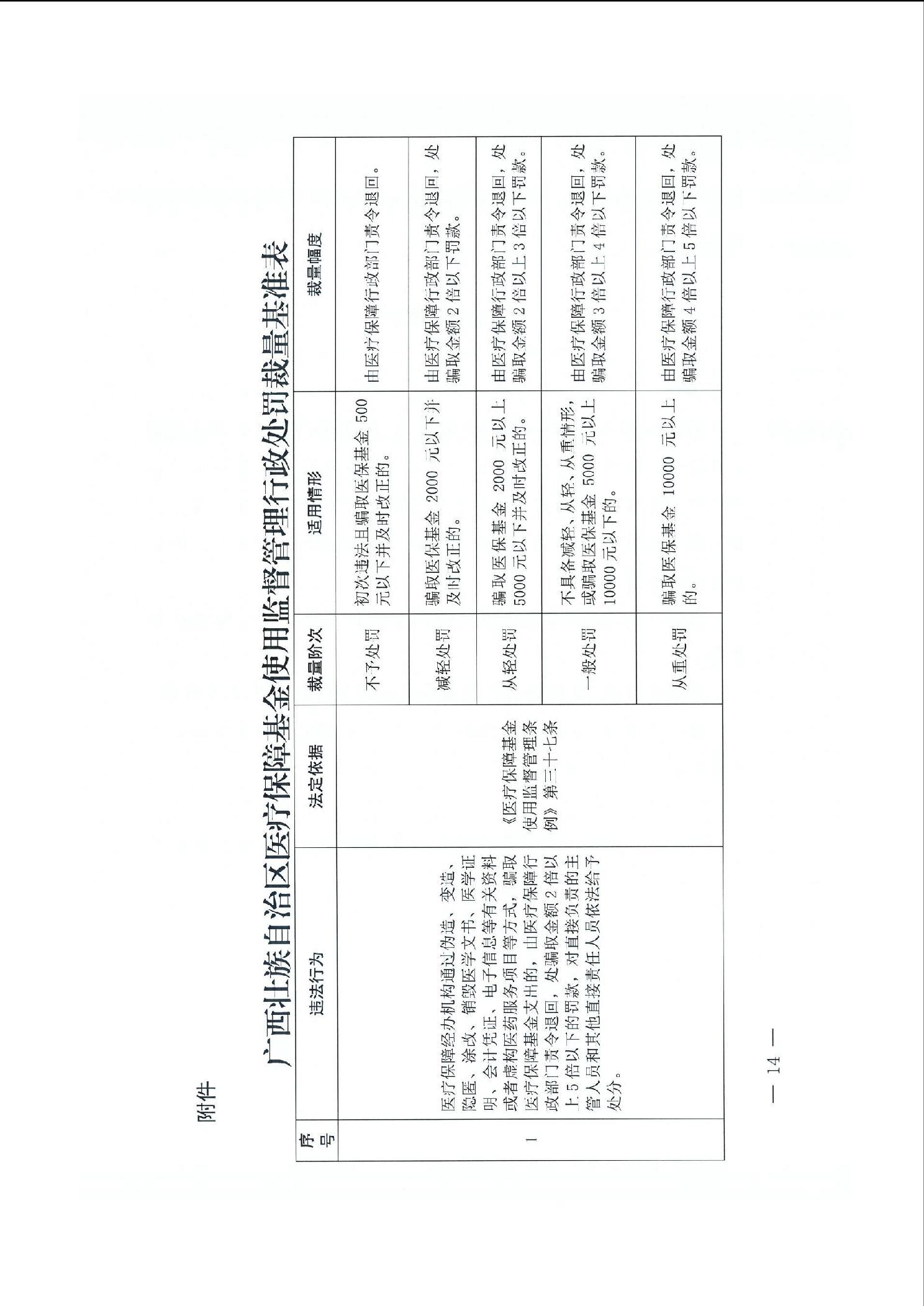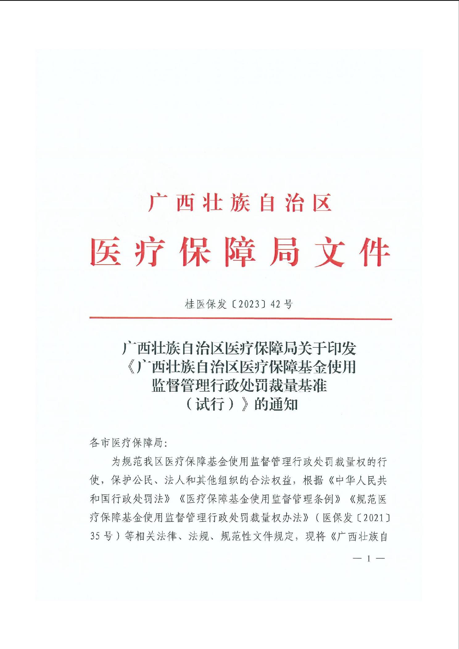 桂医保发〔2023〕42号 广西壮族自治区医疗保障局关于印发《广西壮族自治区医疗保障基金使用监督管理行政处罚裁量基准(试行)》的通知