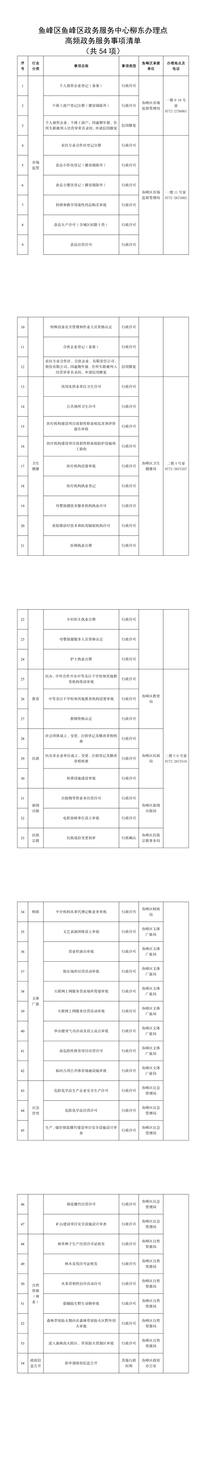 附件:鱼峰区鱼峰区政务服务中心柳东办理点高频政务服务事项清单