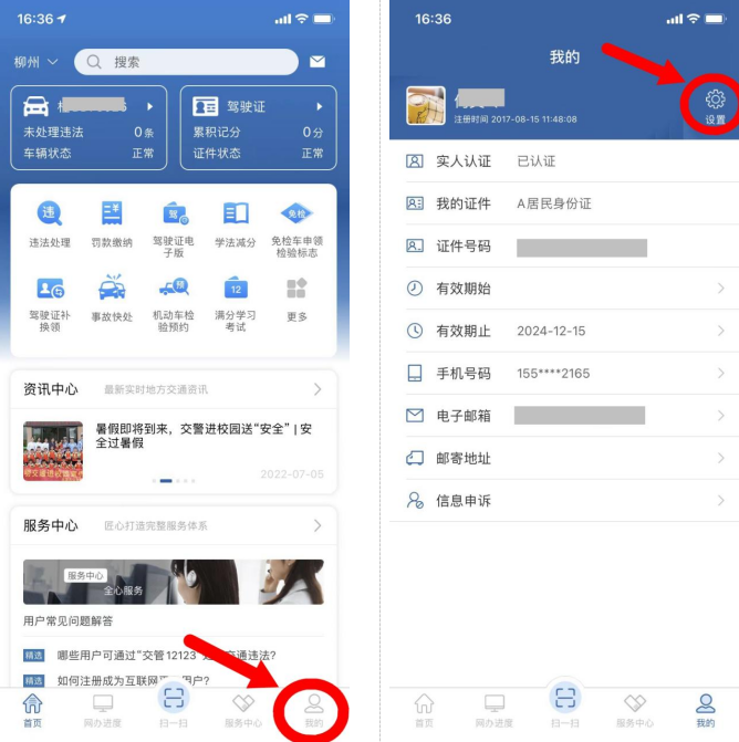 申请人登录“交管12123”APP后,在首页,点击“我的”进入“设置”,申请人可以通过“删除账户”和“账号迁移”两种方式进行更新。