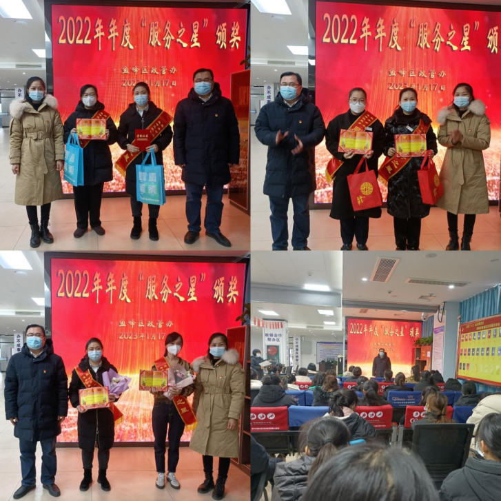 为持续营造积极向上的政务服务氛围,进一步激励广大“政务人”提升服务质量,1月17日下午,鱼峰区政务服务中心开展2022年度“服务之星”颁奖活动,区政管办党组书记马俊,区政管办党组成员、副主任李柳萍分别为获奖人员颁奖并予以表彰。