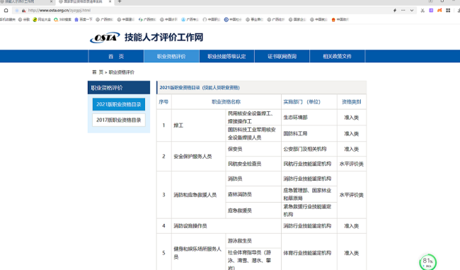 1.国家职业资格证书:职业资格实行目录清单管理,由人力资源社会保障部公布,2021年版《国家职业资格目录》技能人员职业资格目录共13个项,可在人社部技能人才评价工作网查询,网址:http://www.osta.org.cn/zyzgpj.html。