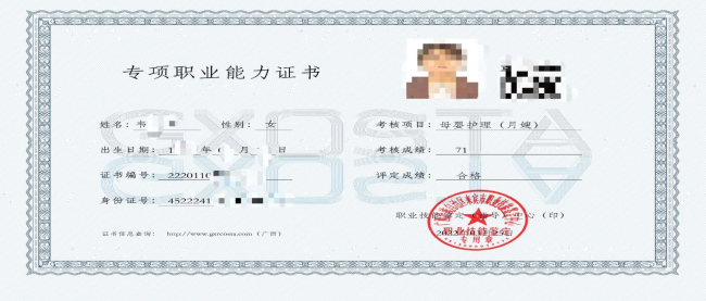 3.专项职业能力证书:专项职业能力由经人社部门备案的职业技能考核鉴定机构实施考核,各级人社部门职业技能鉴定中心颁发证书,目前广西可开展考核的专项职业能力考核项目共有111项,根据工作需要持续开发新的项目并公布实施,考核鉴定机构及项目可在广西技能人才评价工作网查询,网址:http://www.gxrcosta.com。