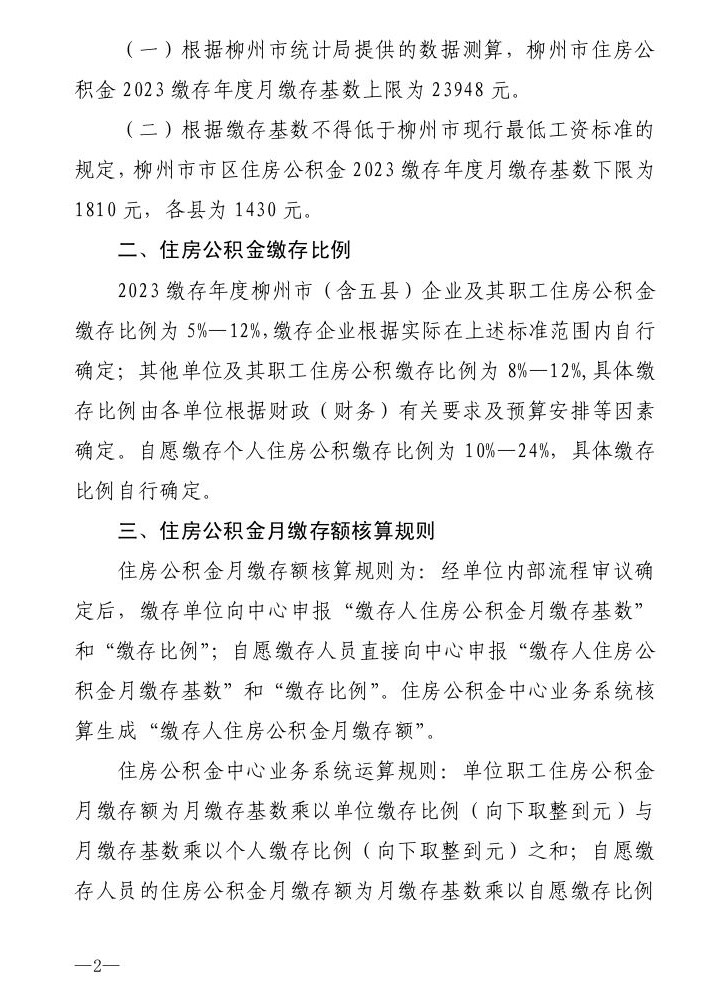 柳房金〔2023〕3号 关于确定柳州市住房公积金2023缴存年度月缴存基数上限、下限的通知