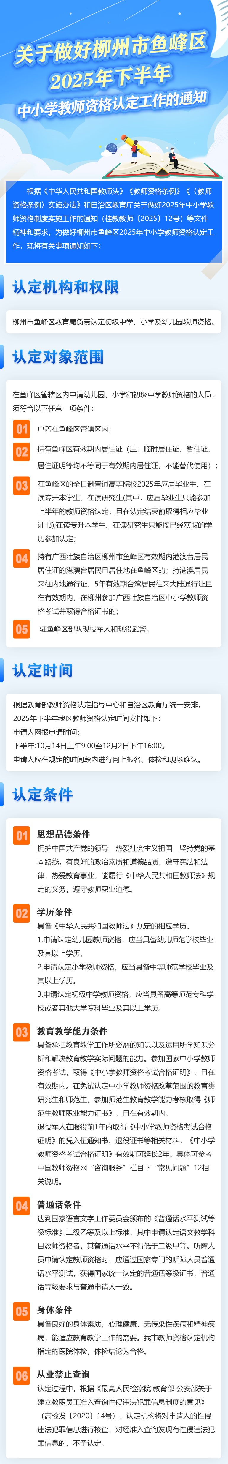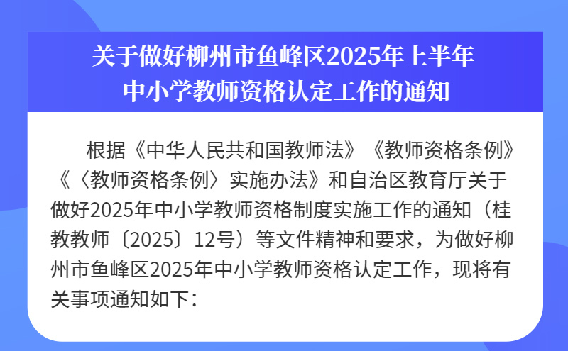 鱼教发〔2025〕2号 关于做好柳州市鱼峰区2025年上半年 中小学教师资格认定工作的通知