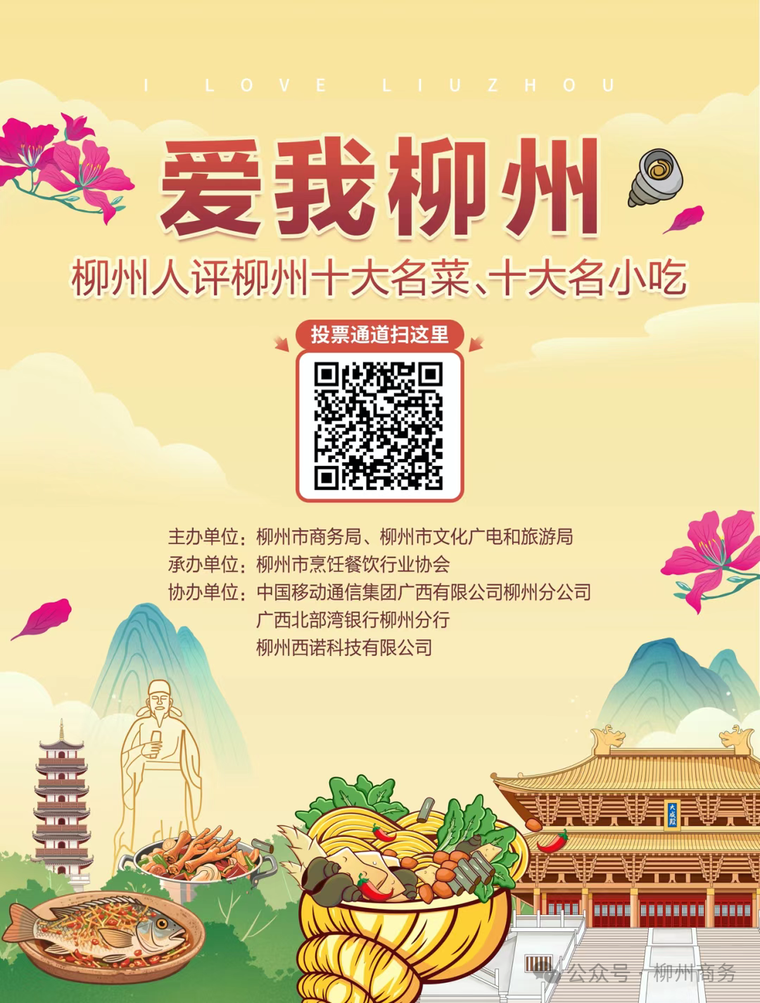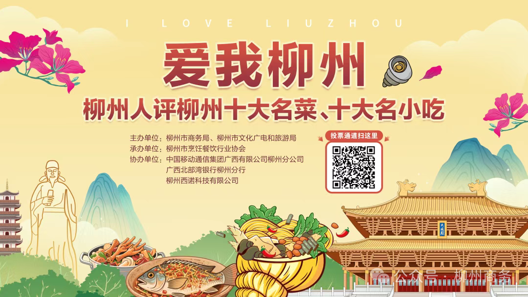 为贯彻落实中共中央、国务院《提振消费专项行动方案》关于“提升餐饮服务品质,支持地方发展特色餐饮”指示要求,进一步激发餐饮消费市场活力,大力推广柳州特色非遗美食,提升地方特色美食的知名度和影响力,由柳州市商务局、柳州市文化广电和旅游局主办、柳州市烹饪餐饮行业协会承办,中国移动通信集团广西有限公司柳州分公司、广西北部湾银行柳州分行、柳州西诺科技有限公司协办的“爱我柳州・柳州人评柳州十大名菜、十大名小吃”活动于2025年6月25日正式拉开帷幕。