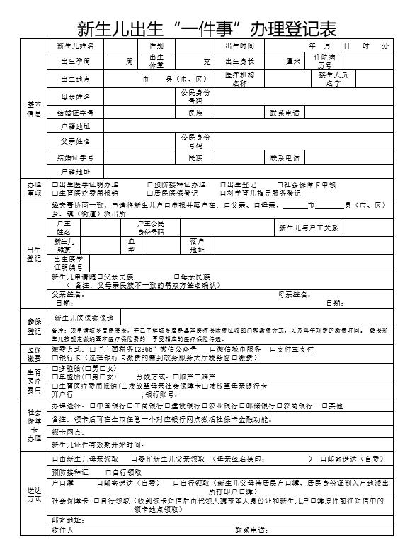 (一)新生儿出生“一件事”申请表;