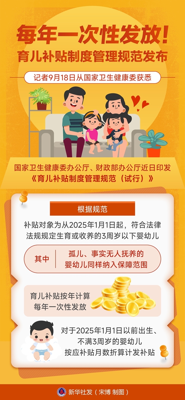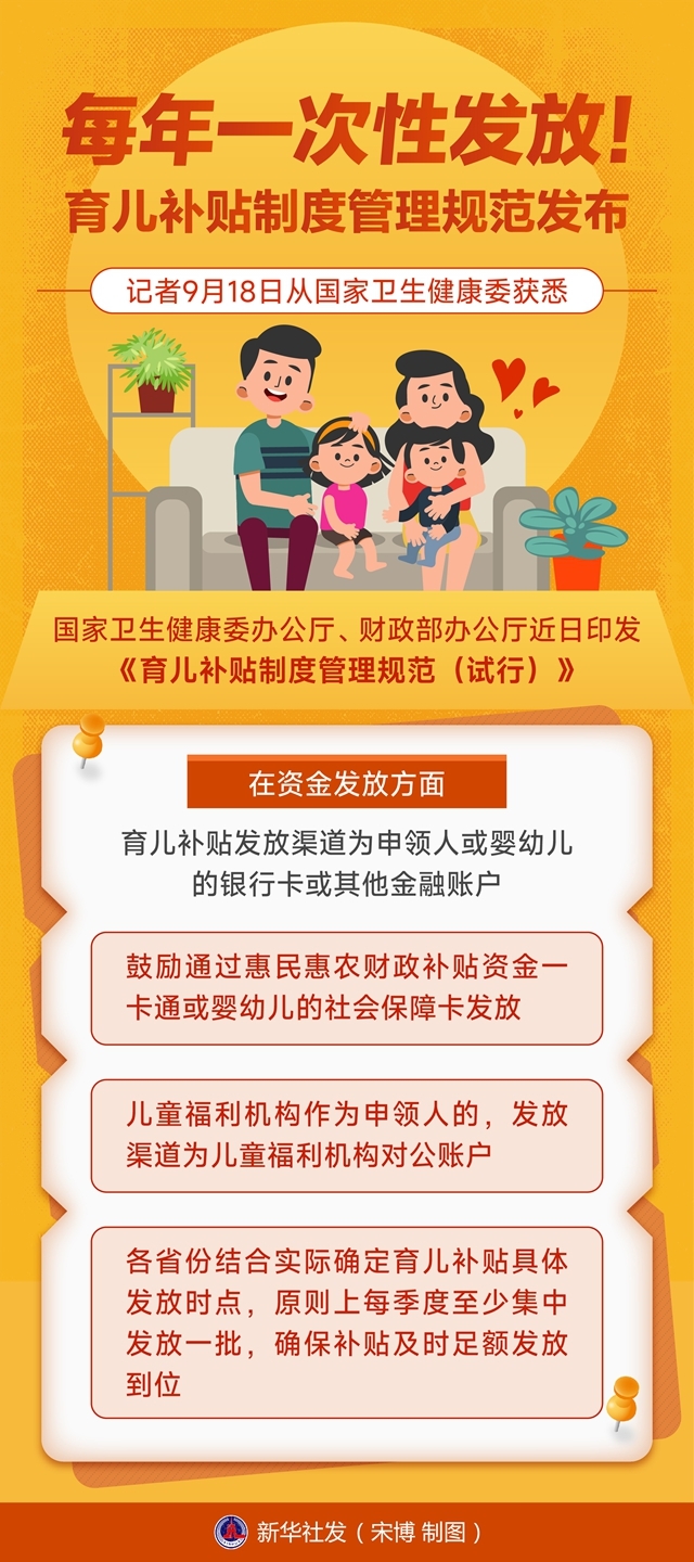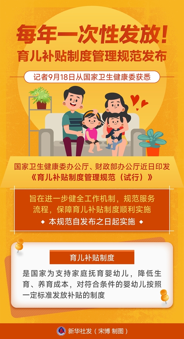 图表:每年一次性发放!育儿补贴制度管理规范发布