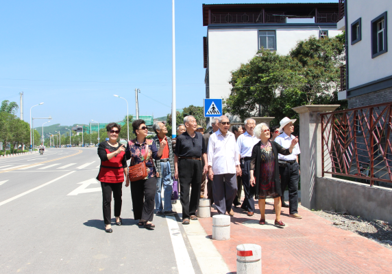 图三:老干部们实地参观滨水大道周边村居建设,感叹柳州新变化越变越好