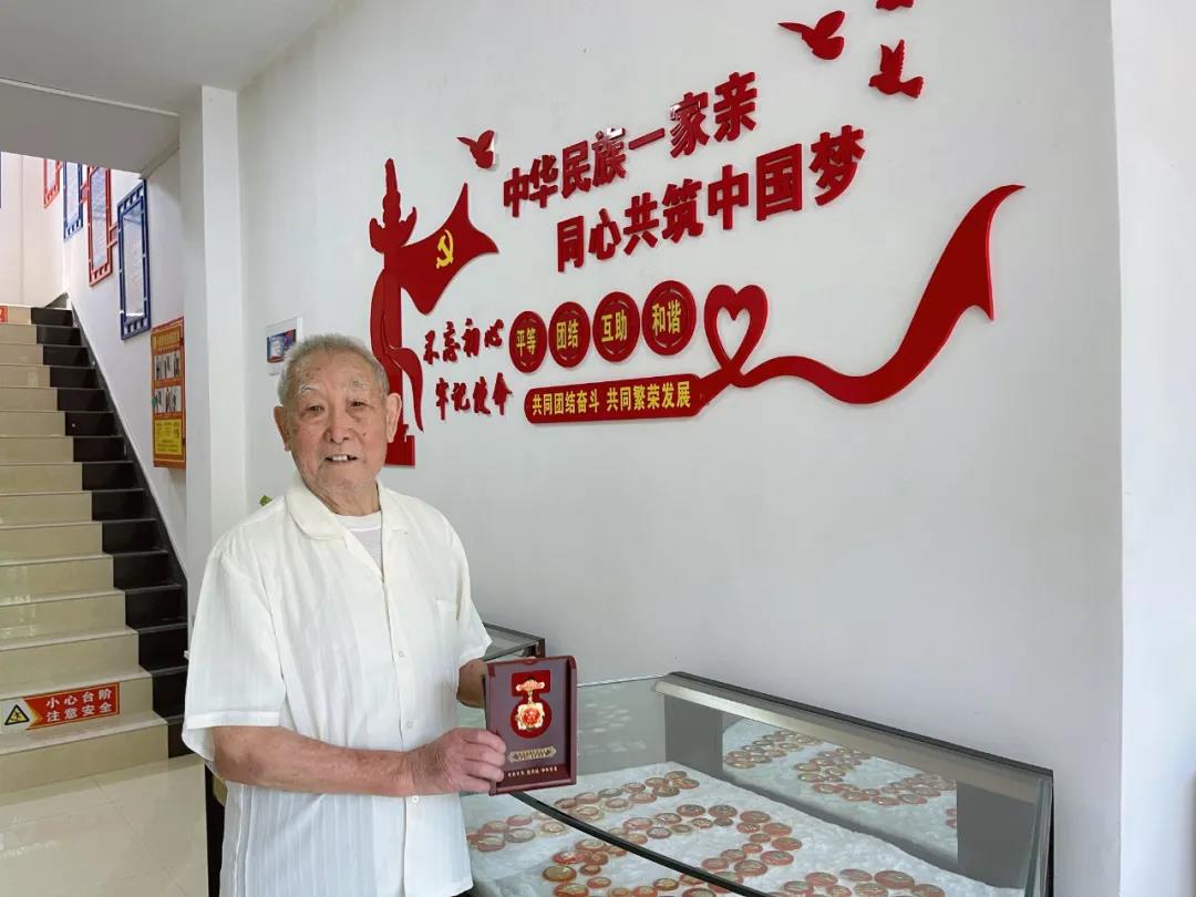 去年,为支持新冠肺炎疫情防控工作,他组织党员捐款,共捐了7000多元。他还把收藏多年的毛主席像章和荣获的勋章拿出来,摆放在龙潭社区里。如今,社区把这些像章勋章摆成“100”和党徽的造型,供居民参观。