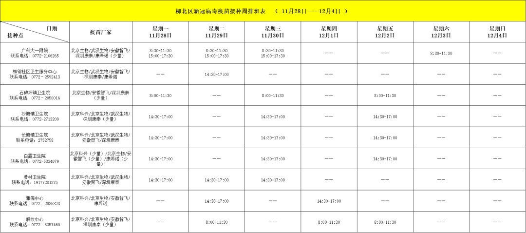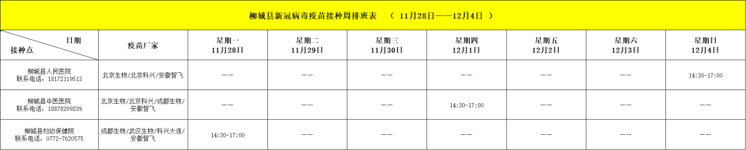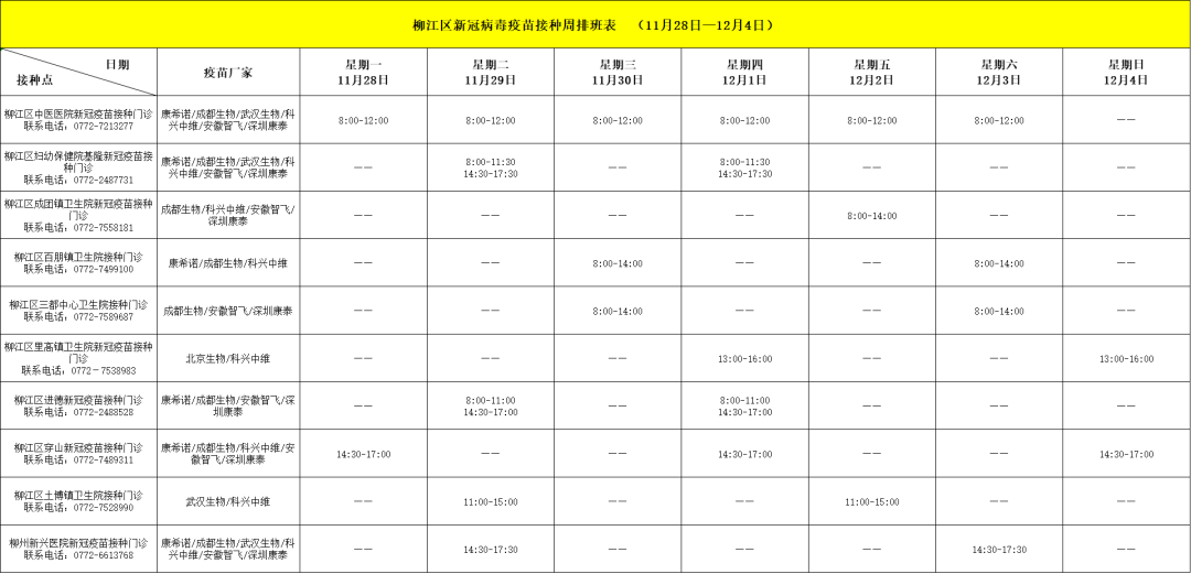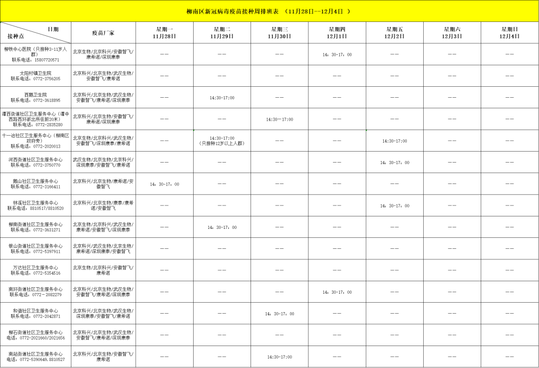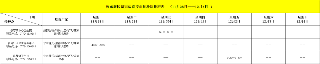 【疫情防控】11月28日——12月4日柳州市新冠病毒疫苗接种安排 | 入(返)柳人员管理需知(11月26日)