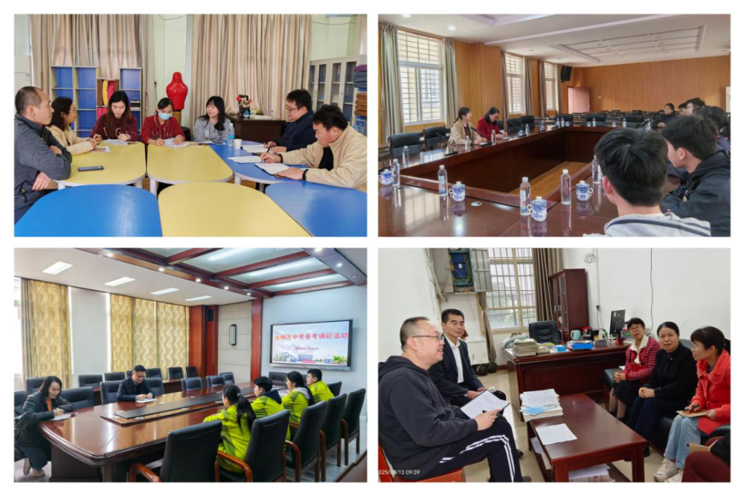 此次调研通过课堂观察、专业会诊、座谈调研、反馈优化的“四维一体”调研模式,全面评估各校备考方案的科学性与备考工作的执行力。重点聚焦备考效能提升、复习策略优化、教学资源整合、师生心理调适等关键环节,旨在构建“区—校—教研组”三级联动机制,推动备考工作从经验型向科学化转型,为2025年中考质量突破奠定坚实基础。