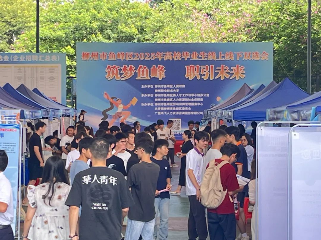 6月15日,“筑梦鱼峰·职引未来”柳州市鱼峰区2025年高校毕业生线上线下双选会在柳州职业技术大学官塘校区拉开帷幕。本次招聘会汇聚102家用人单位、提供5736个就业岗位,以“线下招聘+线上直播”双线模式为高校毕业生与企业搭建起精准对接的桥梁。现场吸引1000余人入场求职应聘,线上超23000人次通过“鱼峰就业”抖音直播间云端互动,主播围绕岗位介绍与求职技巧开展分享并实时答疑,为未能亲临现场的青年群体打开了“云端就业通道”。