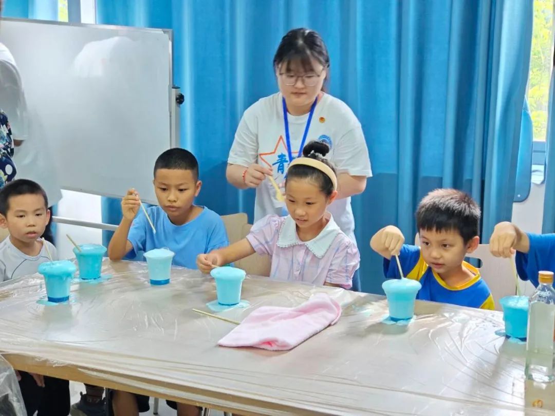 科学探索与艺术创造激发无限可能。“火山爆发”小实验让孩子们惊叹连连,“植物拓染”手工制作则让他们感受自然的奇妙。在制作书签、歌曲共学等环节中,孩子们大胆展示自我,提升了动手能力和创造力。这些活动不仅拓宽了视野,更在他们心中播下了热爱科学、亲近自然的种子。