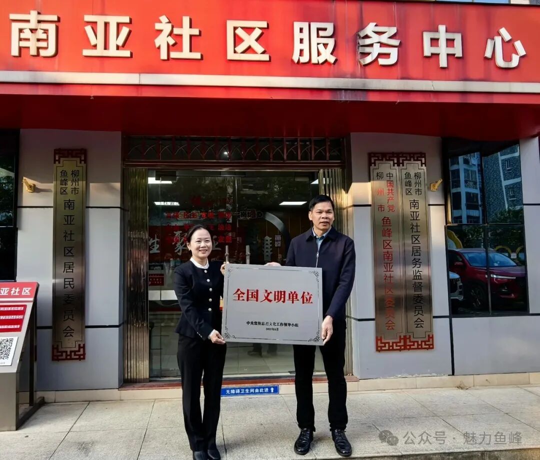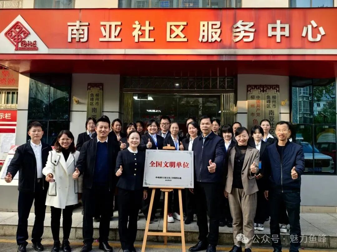 今年,鱼峰区麒麟街道南亚社区再获国家级重磅殊荣,成功获评第七届“全国文明单位”,成为柳州市首个获此殊荣的城市社区。12月9日下午,授牌仪式在南亚社区隆重举行,鱼峰区委书记钟云一行莅临社区授牌指导,区委常委、宣传部部长贾志娟,区委常委、区委办主任王海涛及相关负责人、南亚社区全体工作人员共同见证这一荣耀时刻。