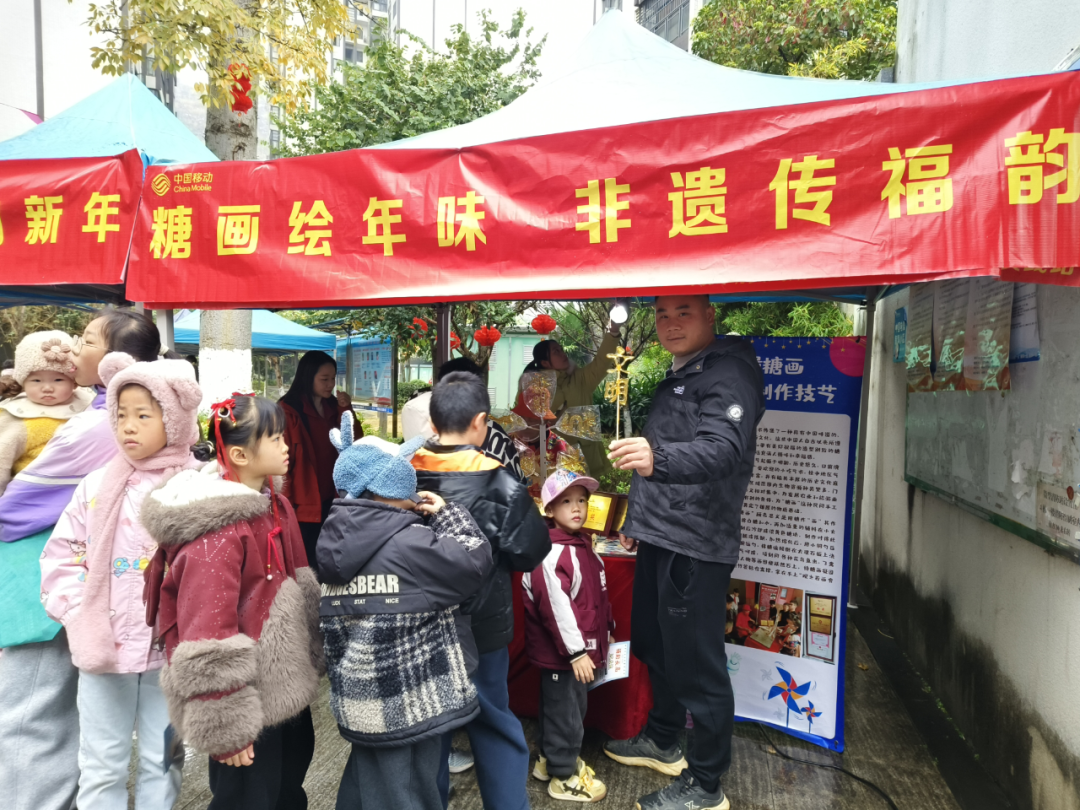 文明实践理论宣讲队带来的非遗宣传,成为集市亮点。围绕剪纸、春联、糖画三项非遗,解读其历史底蕴与当代意义,志愿者现场教学,孩子们巧手剪“马”贴“福”,书法老师挥毫书写马年春联与家训联,糖画师傅妙手勾勒骏马与“文明”字样,让非遗从展柜走进日常生活,让文明新风在互动中传递。