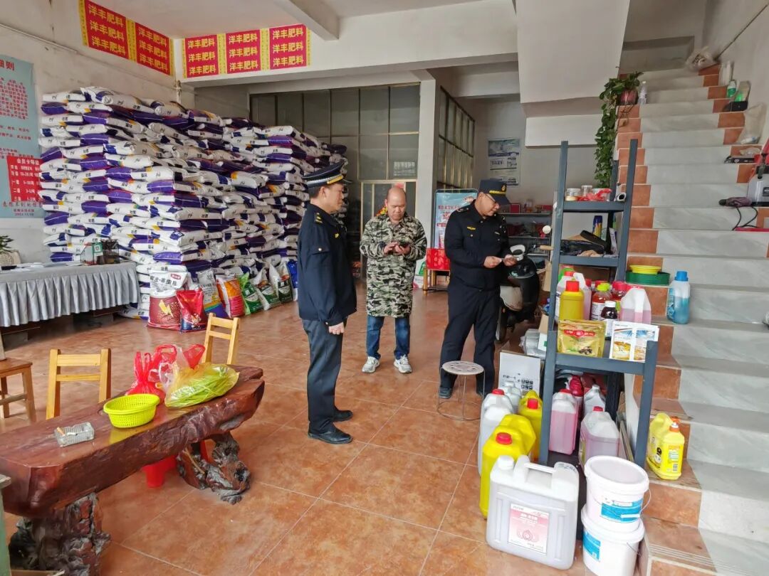 镇执法队与市场监管所联动,对辖区农资门店开展拉网式检查,严查种子、化肥、农药等产品质量与来源,打击违法行为,净化市场环境,守护农户权益,让农户买得放心、用得安心、种得顺心。