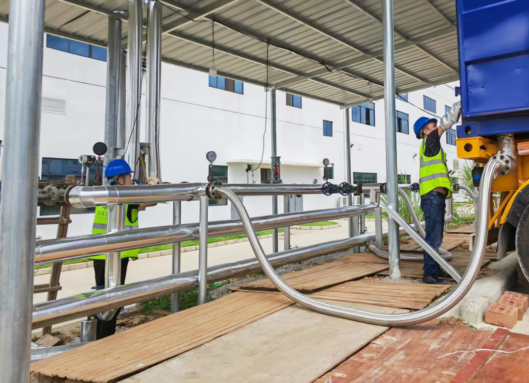 移动供热车利用生活垃圾在焚烧炉内经高温燃烧产生的热能,为园区急需用热企业提供蒸汽热源,解决企业用热难题。广西仙茱制药有限公司是园区首个移动供热用户,接收由4台移动供热车辆源源不断供应的蒸汽,并将在移动供热稳定后,逐步替代现有天然气锅炉,极大降低了企业生产成本。