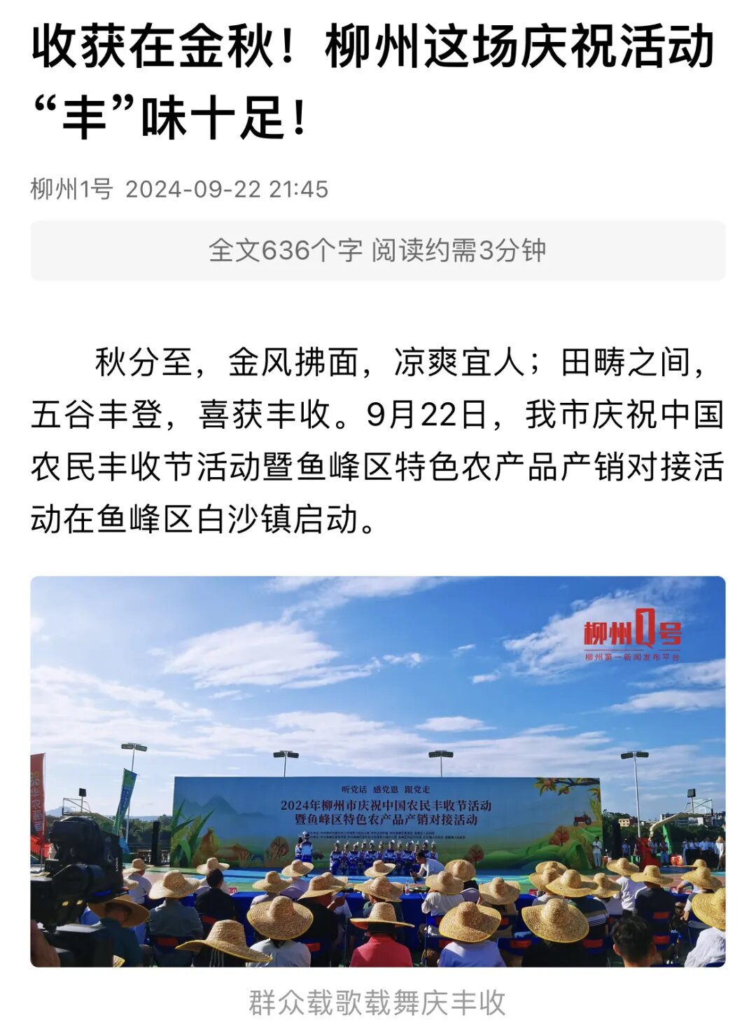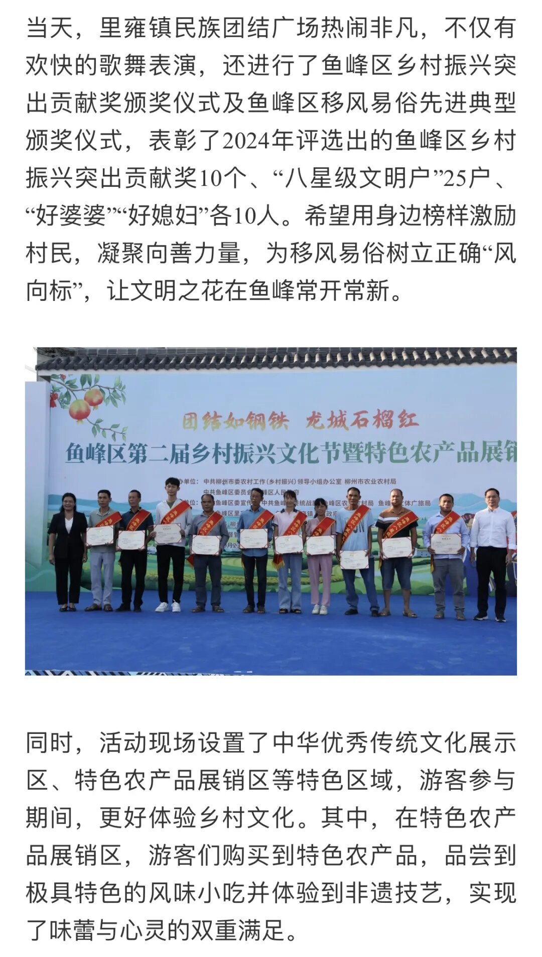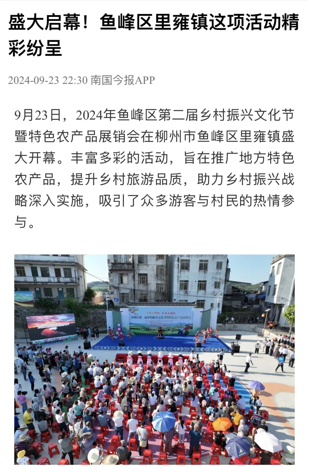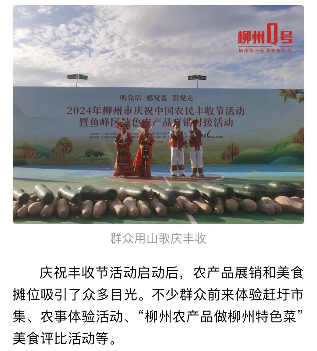 9月23日,在柳州市鱼峰区里雍镇举行的鱼峰区第二届乡村振兴文化节暨特色农产品展销会活动,也得到多家媒体关注。