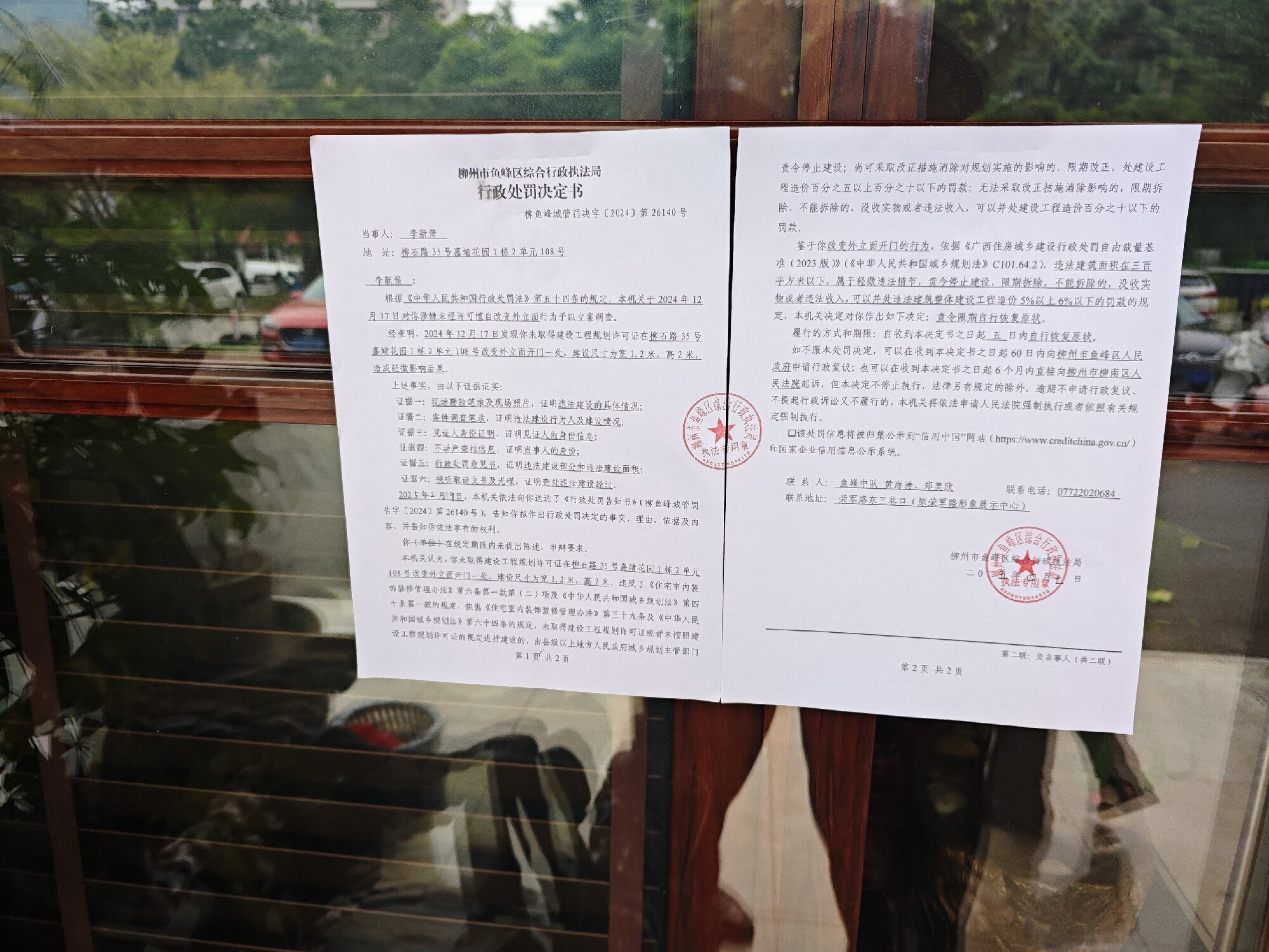 2025年4月7日,柳州市鱼峰区综合行政执法局依法作出《责令限期拆除决定书》(柳鱼峰城管责拆决字〔2024〕第26140号)。因采取直接送达、留置送达、邮寄送达等其他送达方式均无法向当事人李新策送达,为确保当事人的合法权益,根据《中华人民共和国民事诉讼法》第九十五条第一款,《中华人民共和国行政处罚法》第六十一条第一款,《住房和城乡建设行政处罚程序规定》第三十六条第二款之规定向李新策公告送达《责令限期拆除决定书》(柳鱼峰城管责拆决字〔2024〕第26140号),公告期为三十日,公告期满即视为送达。(本公告中的受送达对象:李新策)