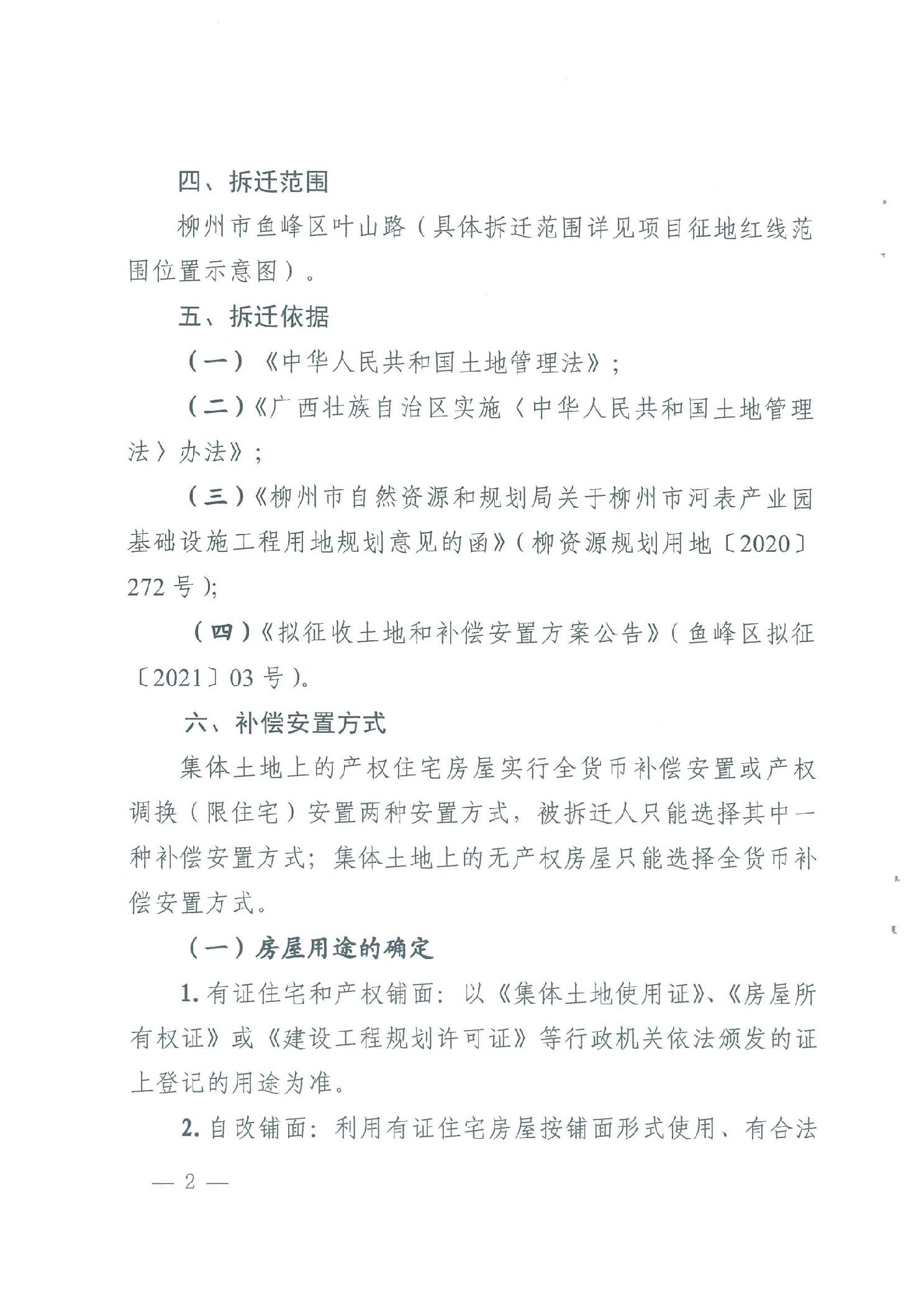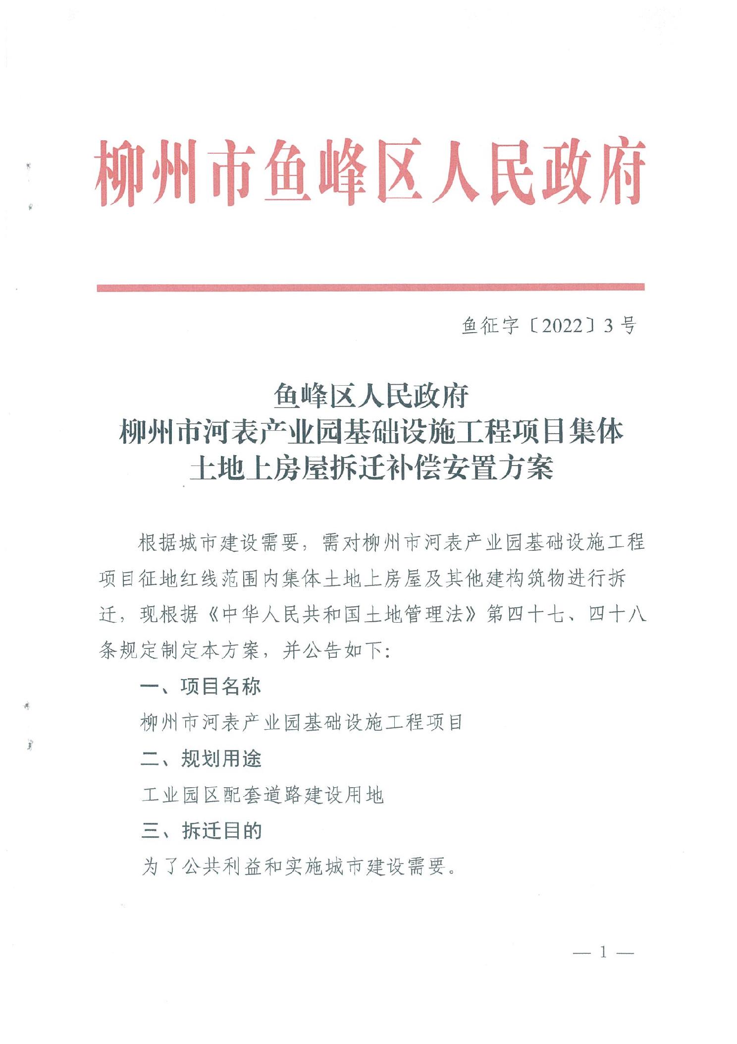 柳州市河表产业园基础设施工程项目集体土地上房屋拆迁补偿安置方案